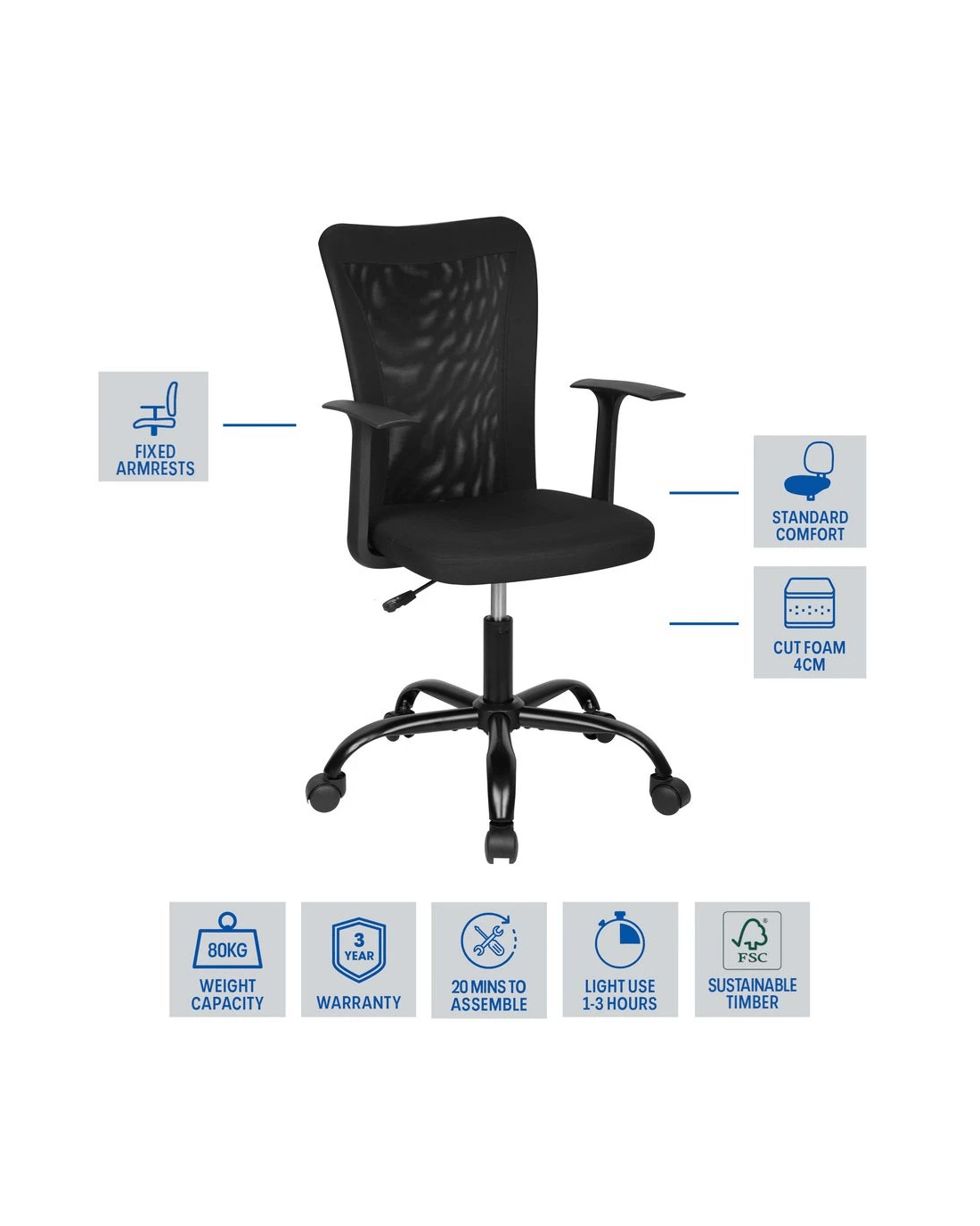 Sold by OfficeworksAntrim Student Chair with Arms Black