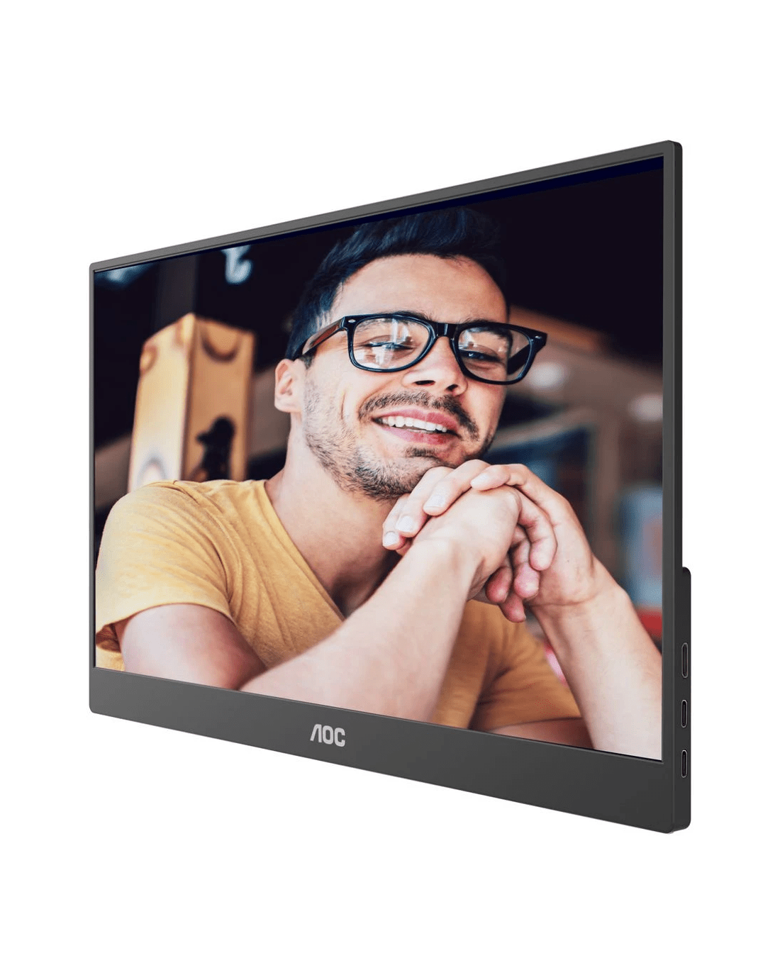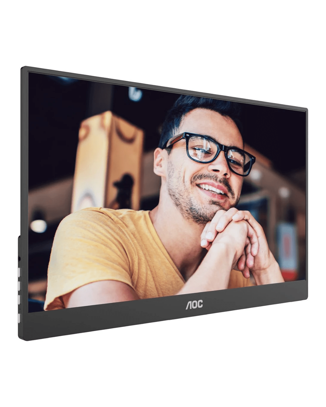 This AOC 15.6" portable monitor offers crisp Full HD visuals with wide-angle IPS technology for clear viewing from any position. It connects easily via USB-C or Mini HDMI, making it ideal for work, travel or entertainment. Plus, the smart cover doubles as a stand and protective case for added convenience.