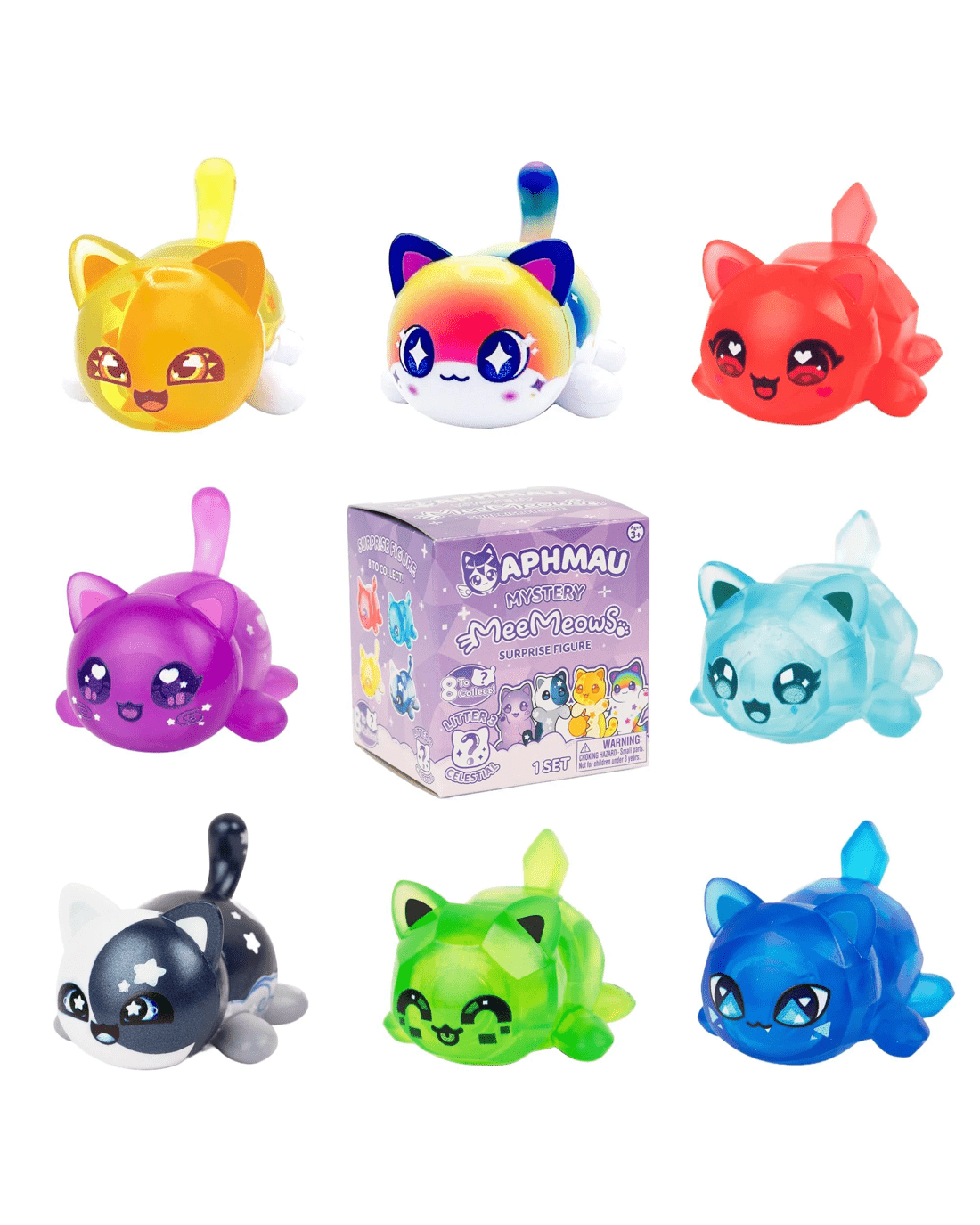 Discover a world of surprises with the Aphmau Mystery MeeMeows Surprise Figure. Inspired by the whimsical creations of Aphmau, YouTube's beloved gaming star, each delightful blind box holds a mini MeeMeow figure that captures a hint of cosmic magic. With every unboxing, you’ll add a spark of joy to your day and grow your collection of adorable Celestial-themed kitties like Rainbow Cat, Galaxy Cat, Moon Cat, or Diamond Cat. Perfect for playtime adventures or display, these charming figures are sure to bring a smile to anyone who loves cute collectables, fun surprises, or Aphmau’s captivating stories. Embrace the excitement and see which MeeMeow will become your new favourite!
