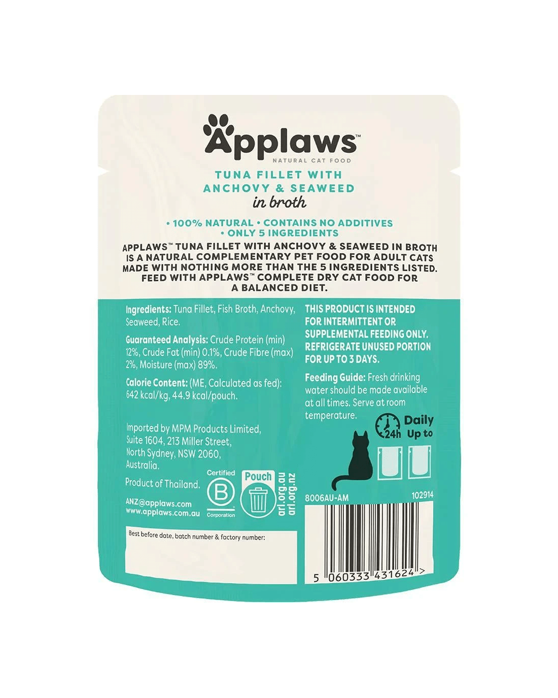 Applaws Natural Wet Cat Food - Applaws Cat Broth Pouch - Tuna & Anchovy 70G 16Pc is a complementary food made with natural ingredients.