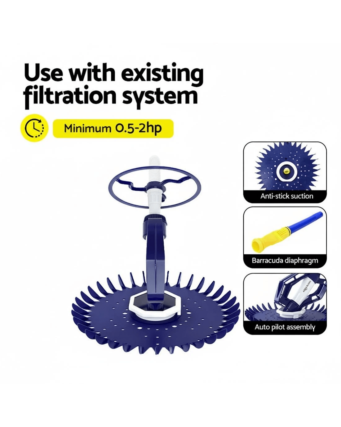 Just connect the hose to your existing filtration system (any pump of 0.5 to 2hp is fine) and let the Cleaner does its magic as it whirls, scrubs and sucks up all the dirt, algae, debris, leaves and bugs lining your pool floor and walls with wide abandon. The finned disc ensures no pool finish, such as concrete, plaster, aggregates, tile or fibreglass, is too hard for it to adhere to. Plus, its anti-stick design and unique rotation foot means every random corner and surface of your pool is cleaned without missing any spot.