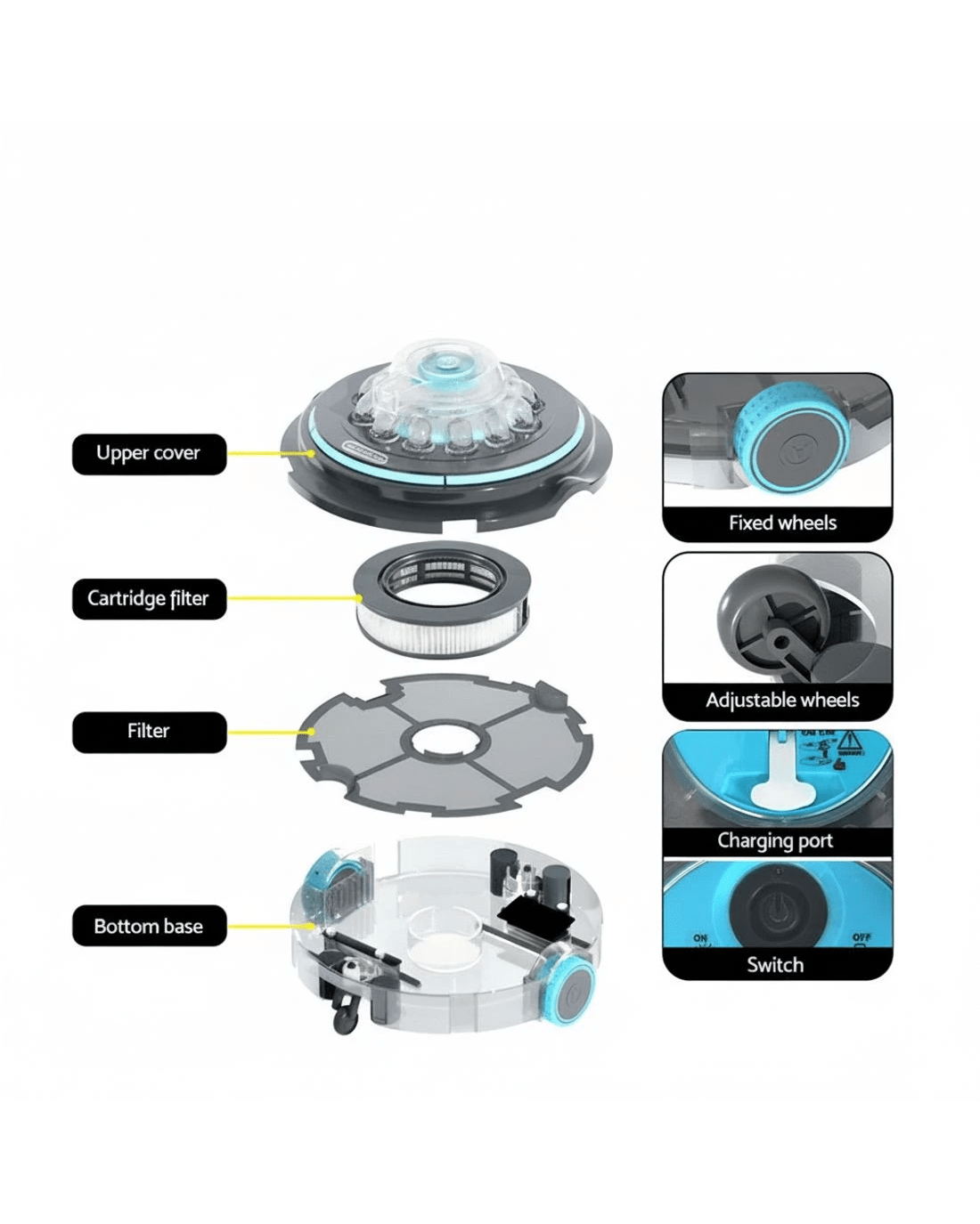 Aqua Buddy Robotic Pool Cleaner Automatic Vacuum Robot Swimming Cordless - Grey