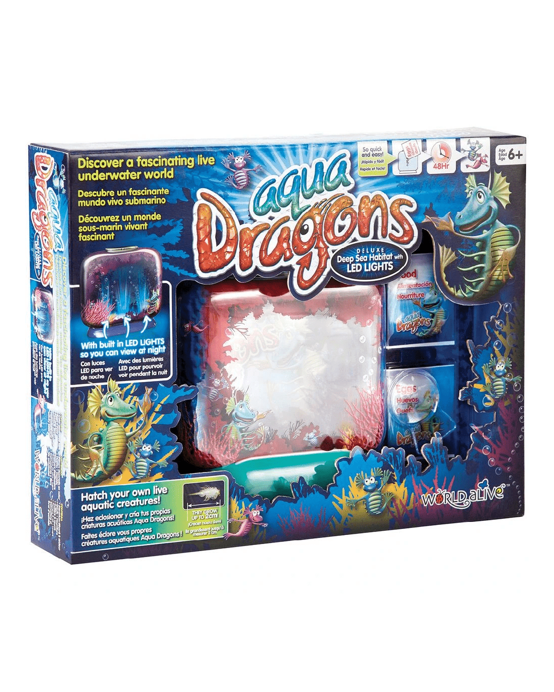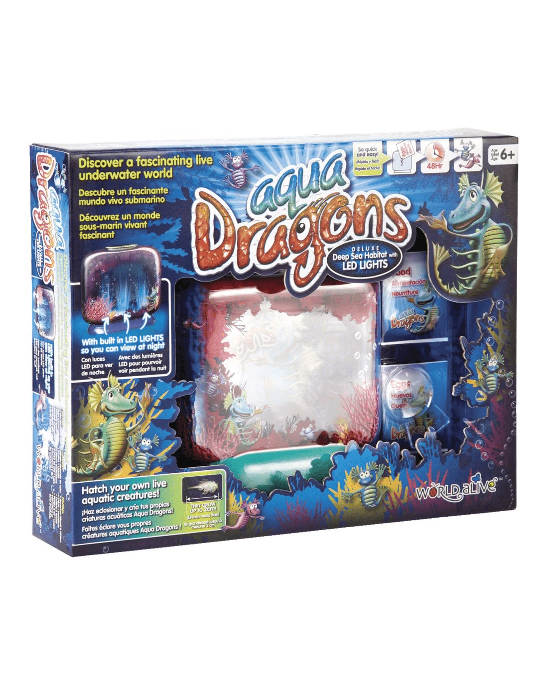 This Aqua Dragons Deep Sea Habitat comes with LED lights, allowing you to view it during the day and at night time. The deluxe tank is double-sided, features magnifiers and comes with eggs, food and more.