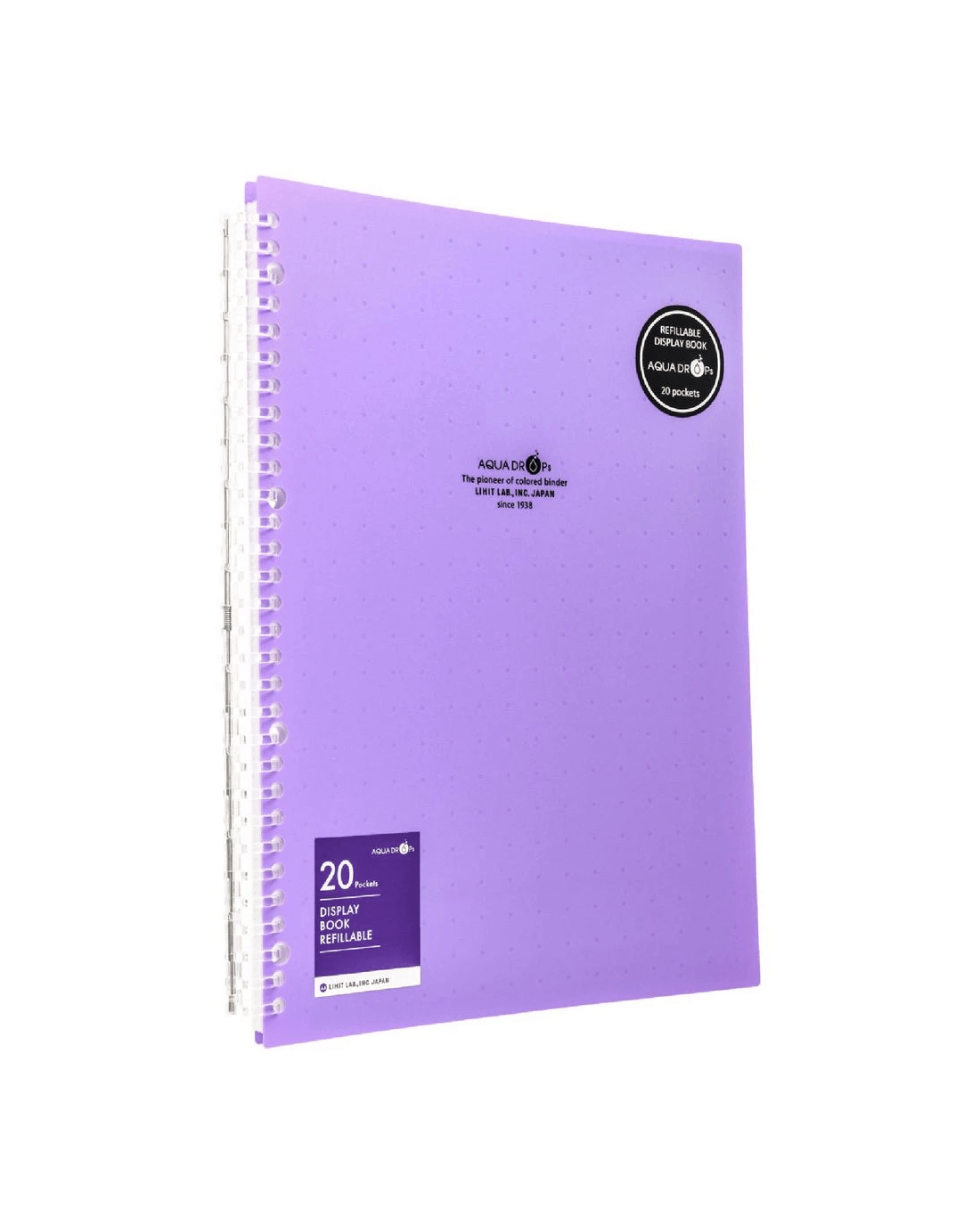 Sold by OfficeworksAqua Drops Refillable Display Book A4 20 Pockets Vivid Purple