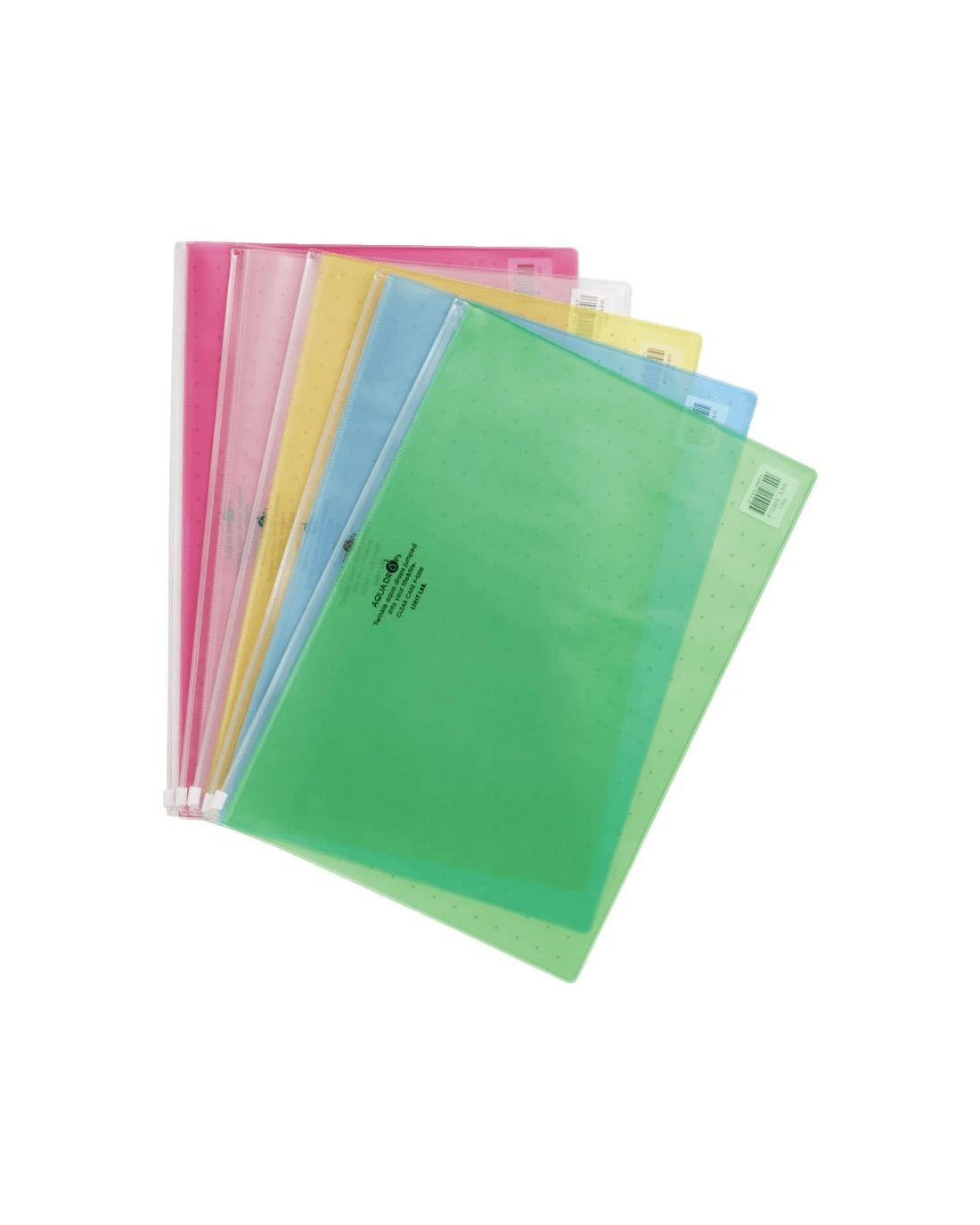 Sold by OfficeworksAqua Drops Zip Open Document Wallet A4 Clear