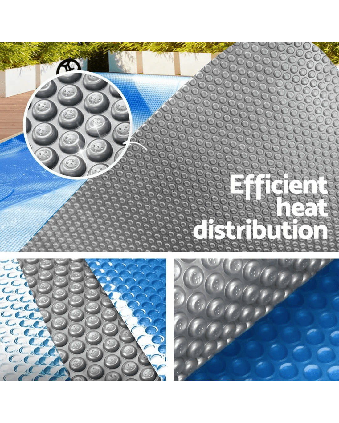 On top of that, our Solar Pool Cover, in addition to keeping debris at bay, also helps to cut down as much 97% evaporation water loss and prevent expensive pool health chemicals from escaping through the surface. The result is a warmer, cleaner and more hygienic pool every time you take a dip in it. What's more, at 500 Microns, the bubbled design is just the ideal weight and thickness to allow for easy handling of the cover without compromising on performance of the solar pool cover.