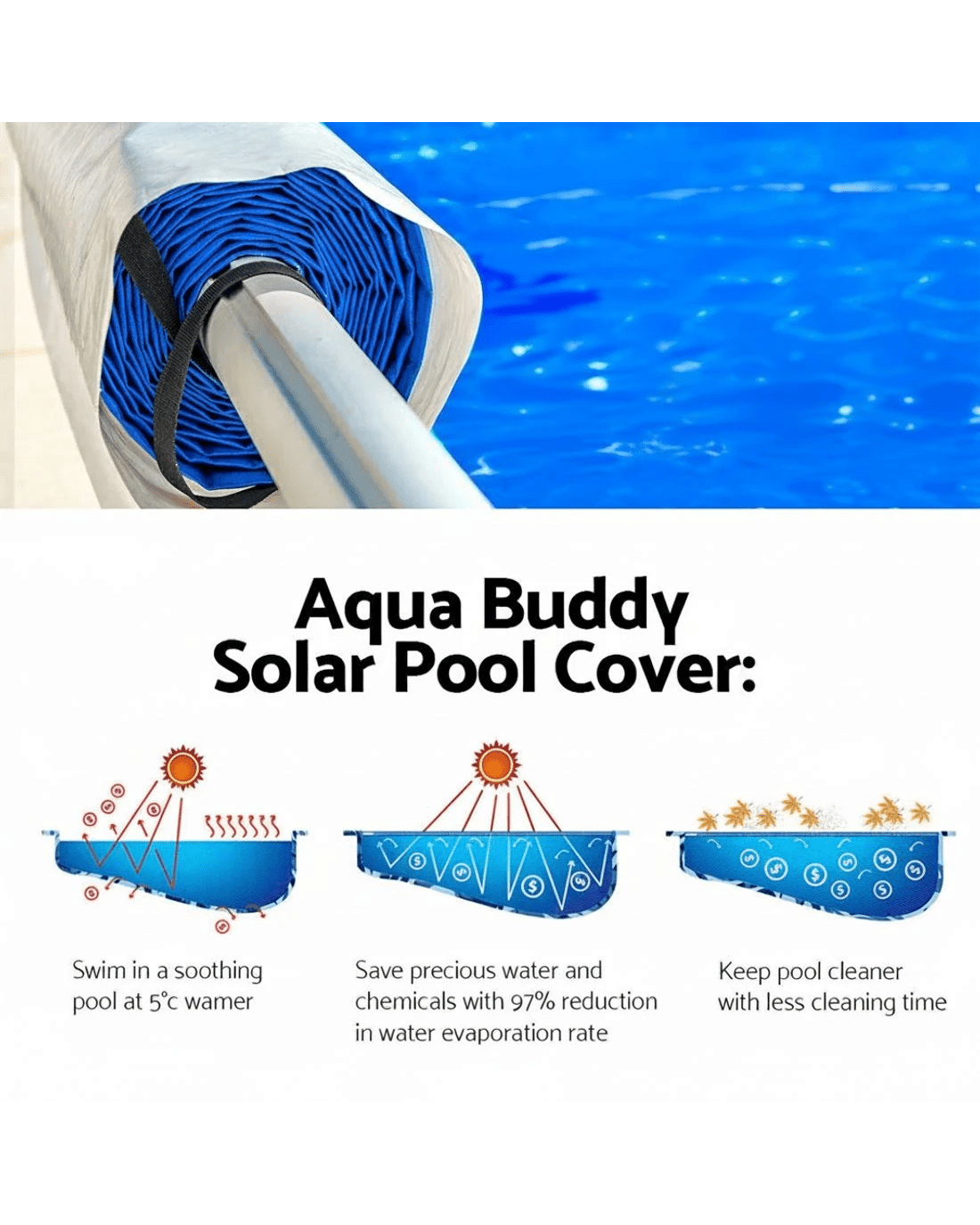 Sold by Aisle SixAquabuddy Pool Cover 500 Micron 10x4m Swimming Pool Solar Blanket 5.5m Roller - Multi