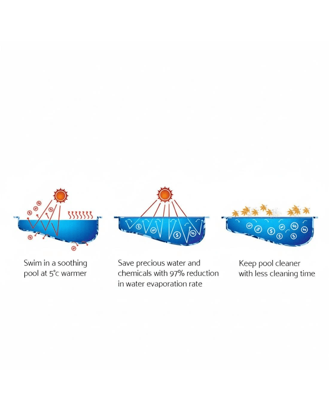 It is especially designed for cooler climate countries, for instance, like Australia. It is designed to extend your swimming period, significantly reducing heat losses. It also reduces the amount of water loss due to evaporation as well as the use of chemical products. Saving you money and giving you more time to enjoy your pool!