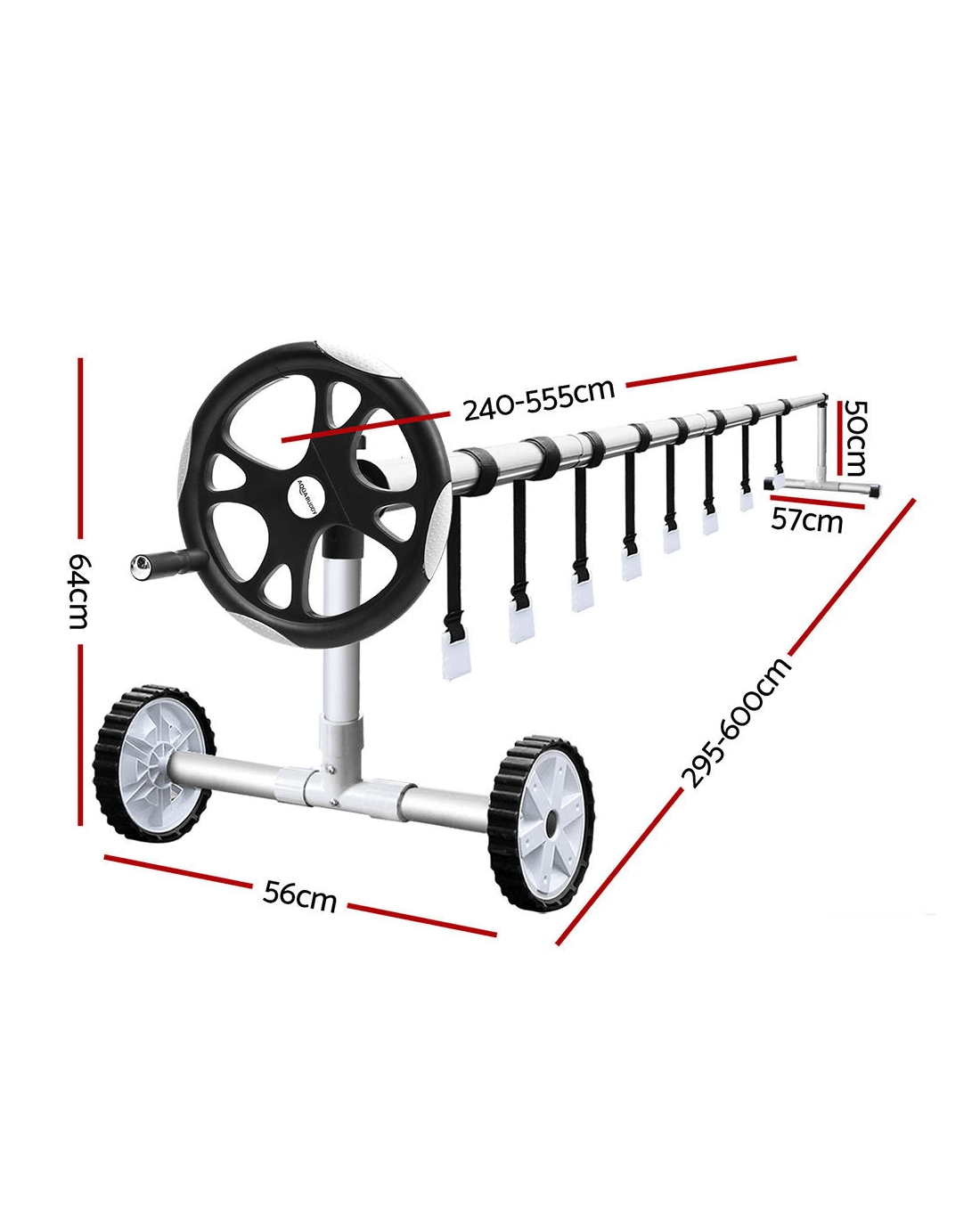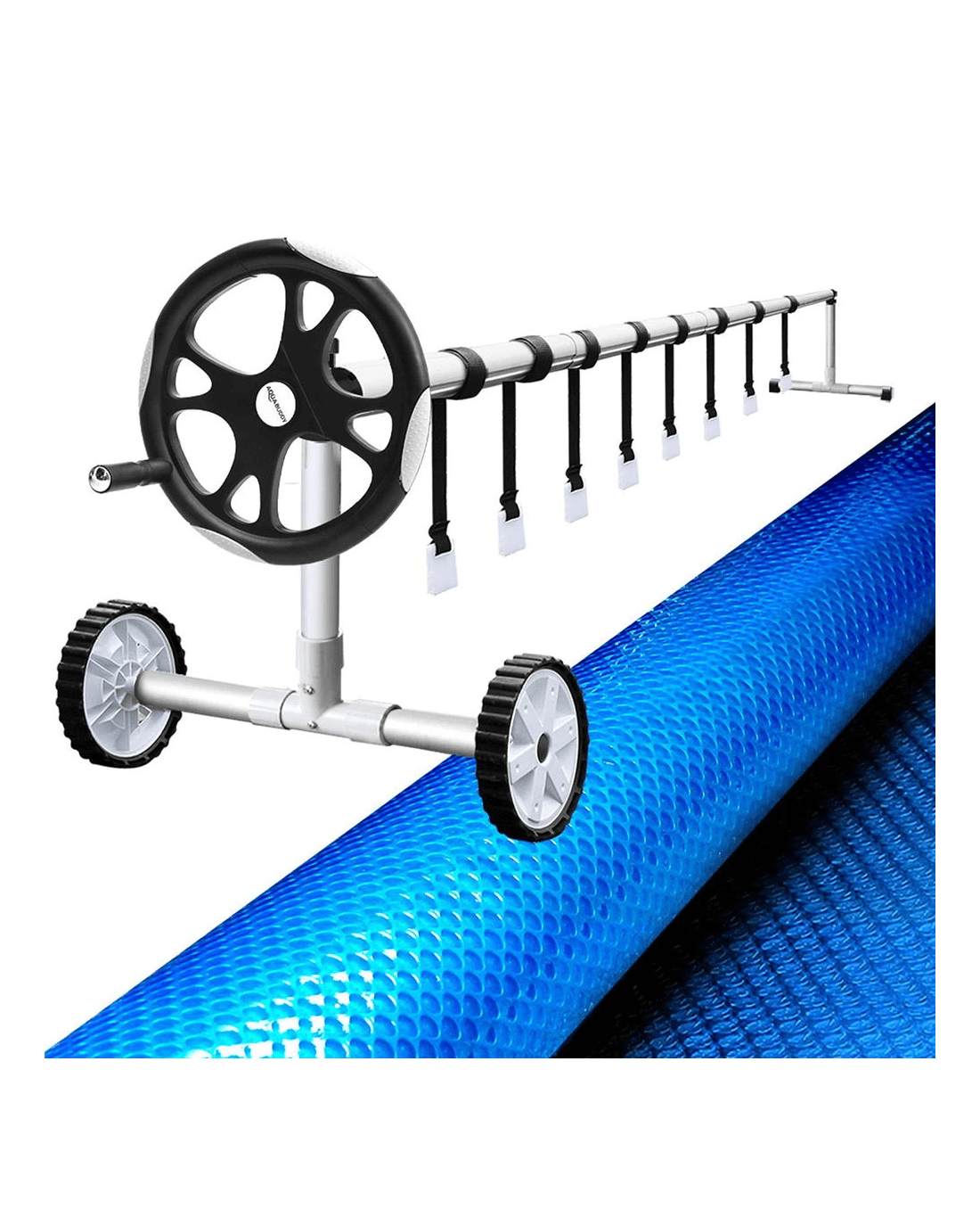 Keep your pool clean from debris and warm from the power of the sun with Aquabuddy's Aluminium Pool Roller and 9m x 5m Pool Cover. Made of sturdy aluminium construction with full adjustability, this pool roller is suitable for pool with a width between 2.4m-5.55m. It is equipped with premium anodized aluminium alloy stands, plastic wheels for maximum portability, and an exclusive non-slip spinning wheel design to easily roll up your pool cover and get right in the water. The solar pool cover is made from premium low-density polyethylene 500 Micron, which makes it extremely durable. Well, the design allows the sun rays to penetrate the pool, increasing the temperature and significantly reducing water evaporation. Aquabuddy helps heat the pool easier and faster, and retain more heat in the pool for a longer time. Finally, the cover keeps the pool water clean all year round, reducing the time spent maintaining the water, pumps and filters. Save money, save time, save summer! Get the best of natural resources and save money on chemicals and water; get yourself an Aquabuddy Pool Roller and 9m x 5m Cover set today!