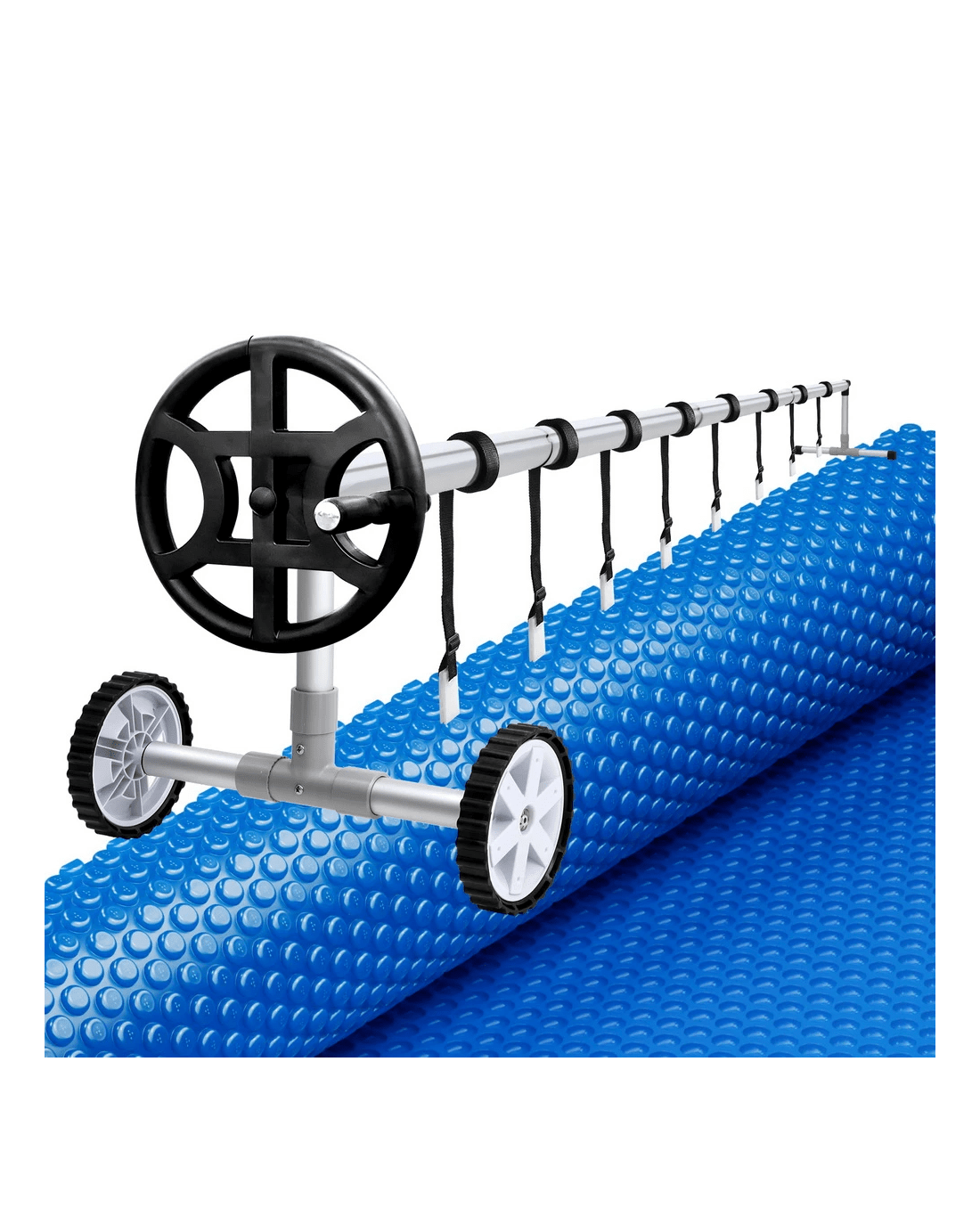 Keep your pool clean from debris and warm from the power of the sun with Aquabuddy's Aluminium Pool Roller and 6.5m x 3m Pool Cover. Made of sturdy aluminium construction with full adjustability, this pool roller is suitable for pool cover with a width between 2.1m-4.05m. It is equipped with premium anodized aluminium alloy telescopic poles, plastic wheels for maximum portability, and a low friction crank wheel to easily roll up your pool cover and get right in the water. The solar pool cover is made from premium low-density 600 micron polyethylene, which makes it extremely durable. The blue bubble allow the sun's rays to penetrate the pool, increasing the temperature and significantly reducing water evaporation. Finally, the cover keeps the pool water clean all year round, reducing the time spent maintaining the water, pumps and filters. Get the best of natural resources and save money on chemicals and water; get yourself an Aquabuddy Pool Roller and Cover set today!