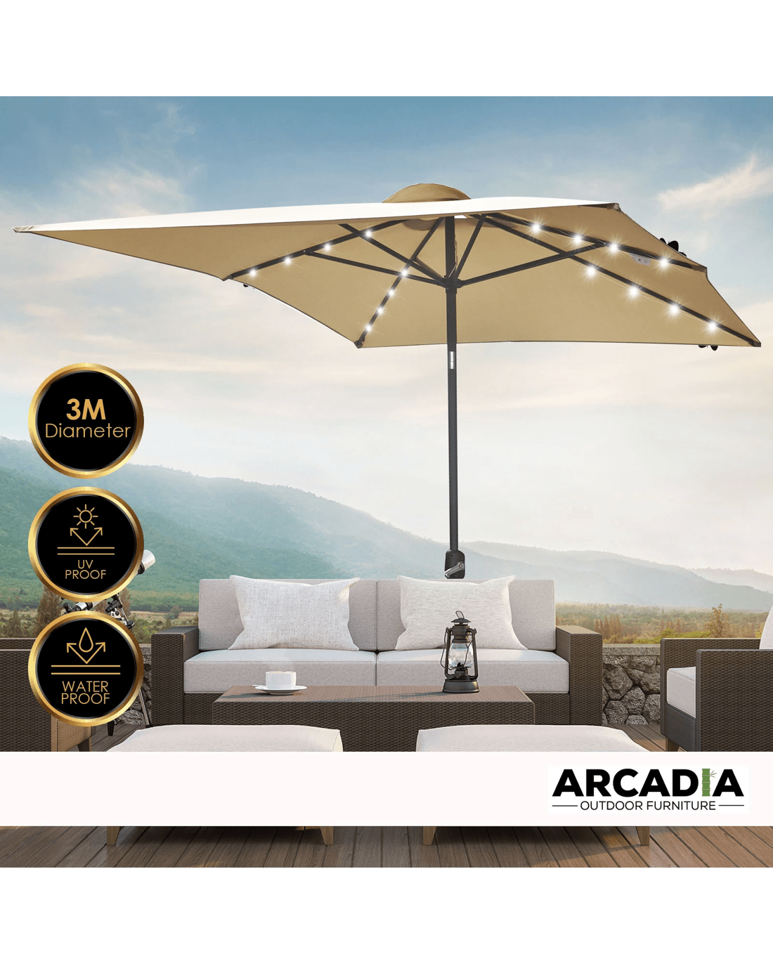 Sold by ABM GlobalArcadia Furniture 3 Metre Umbrella with Solar LED Lights - Beige