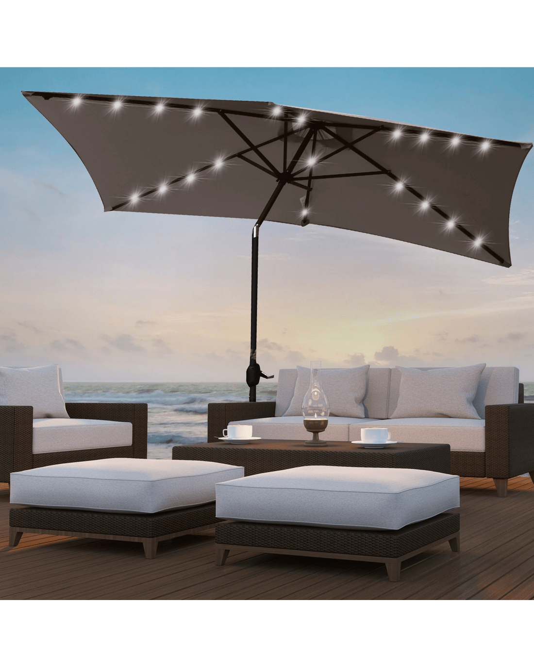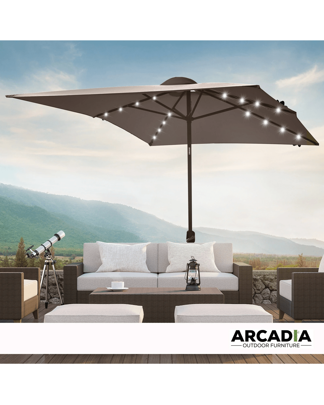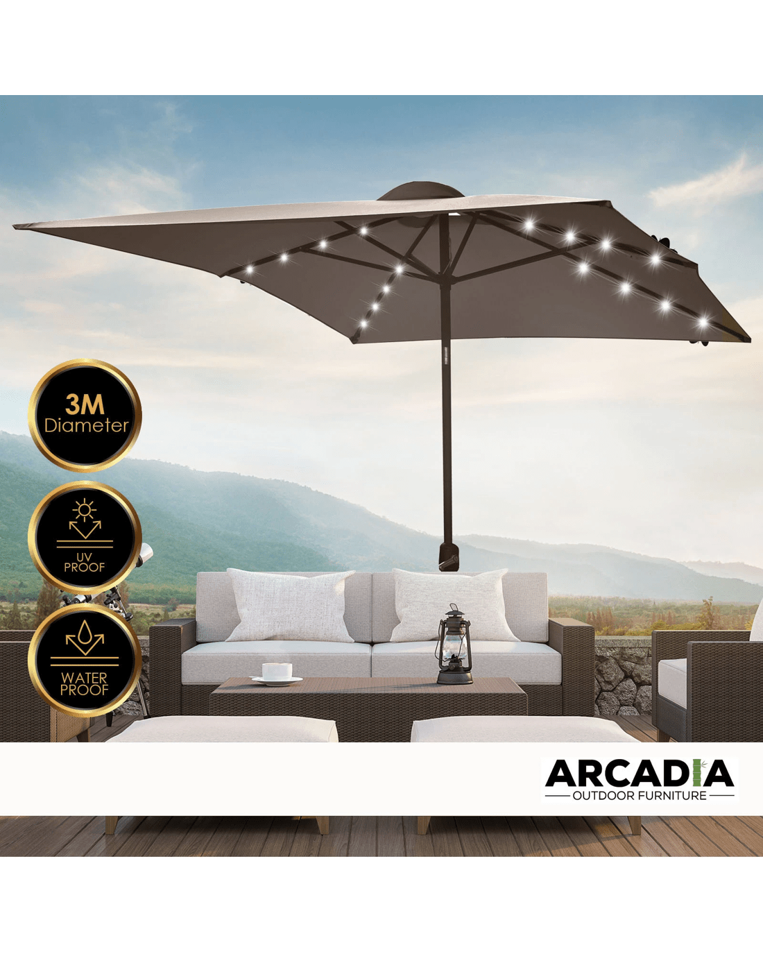 Arcadia Furniture Umbrella 3 Metre Umbrella with Solar LED Lights Garden Yard - Charcoal - Charcoal