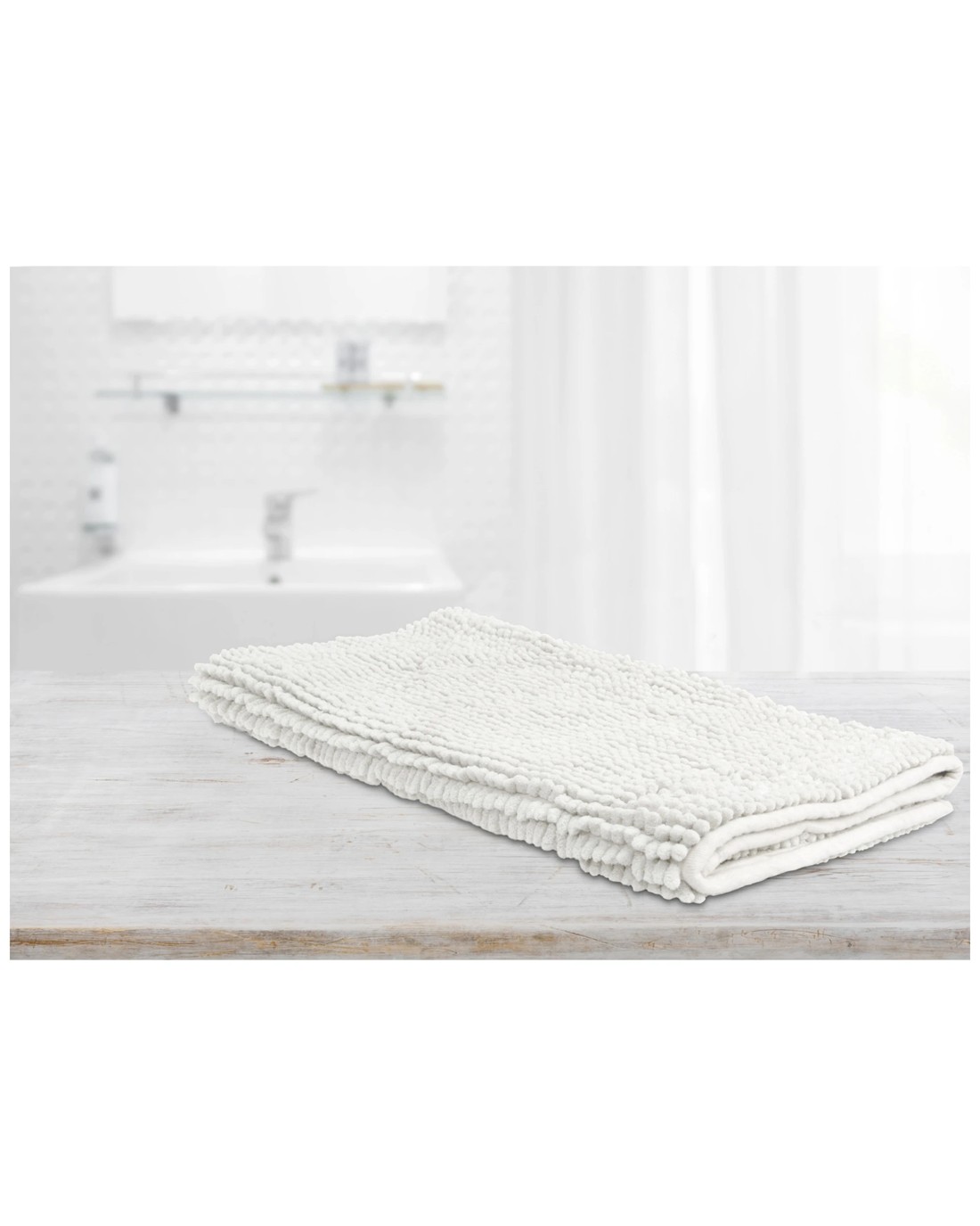 Made from durable polyester material, this bath mat measures 50 by 80 centimetres and features a clean white finish that complements various styles. Its contemporary design makes it both practical and stylish for modern bathrooms.