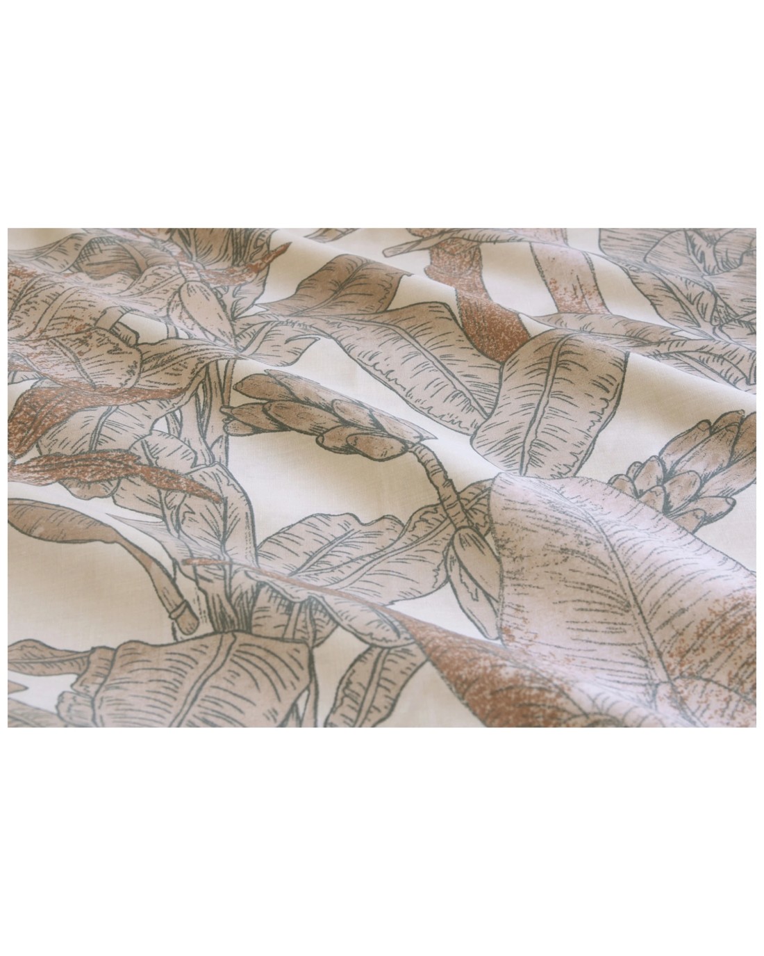 Available in multiple sizes, the set is tailored to fit queen and king beds, with precise measurements provided to ensure perfect fit and aesthetic appeal. The natural botanical pattern with earthy tones promotes a calming and natural bedroom environment.