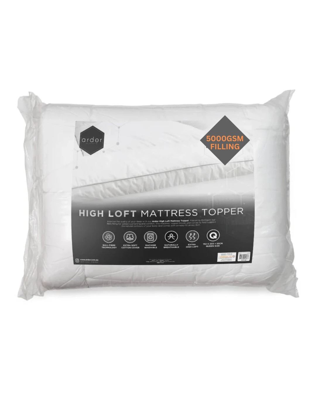 The Ardor Mega Loft Mattress Topper is designed to enhance your sleeping comfort with its ultra loft 5000GSM polyester fibre filling. This luxurious topper adds a thick, plush layer to your mattress, supporting your body's natural contours for a restful night's sleep.