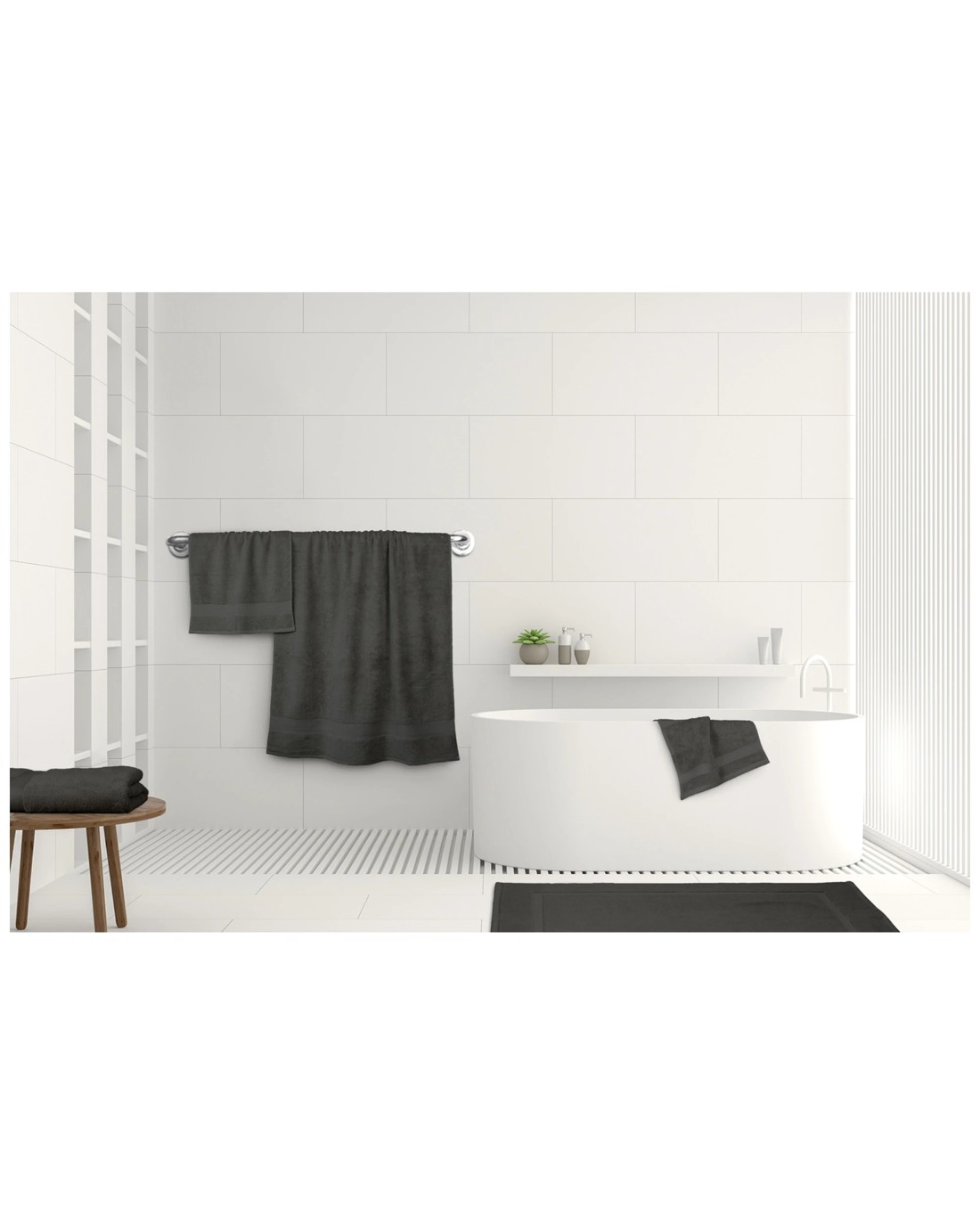 This towel measures 40 x 70cm, making it perfect for hand drying in bathrooms or kitchens. Its charcoal colour adds a sophisticated touch, complementing various decors. The towel's superior fabric quality ensures durability and long-lasting softness.