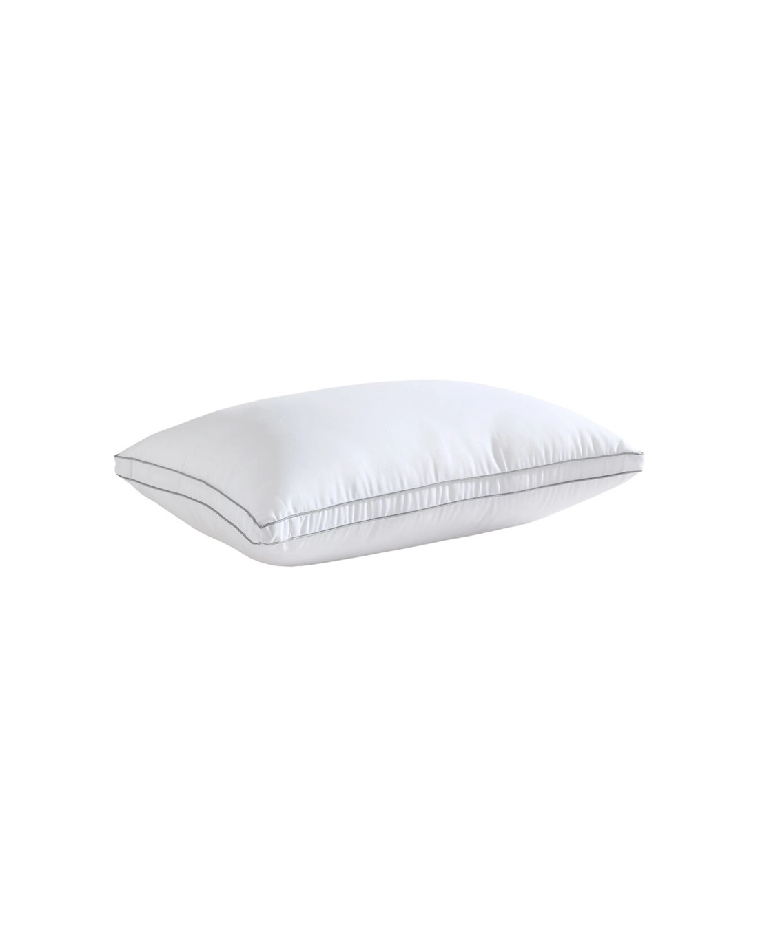 This pillow features a high density microfibre cover with antibacterial properties, supporting hygiene and freshness. Crafted with a gusset for breathability and finished with satin piping for a luxurious feel, it combines softness with sophistication. The 1100 grams of plush polyester filling ensure enduring support and plushness over time, maintaining its softness night after night.