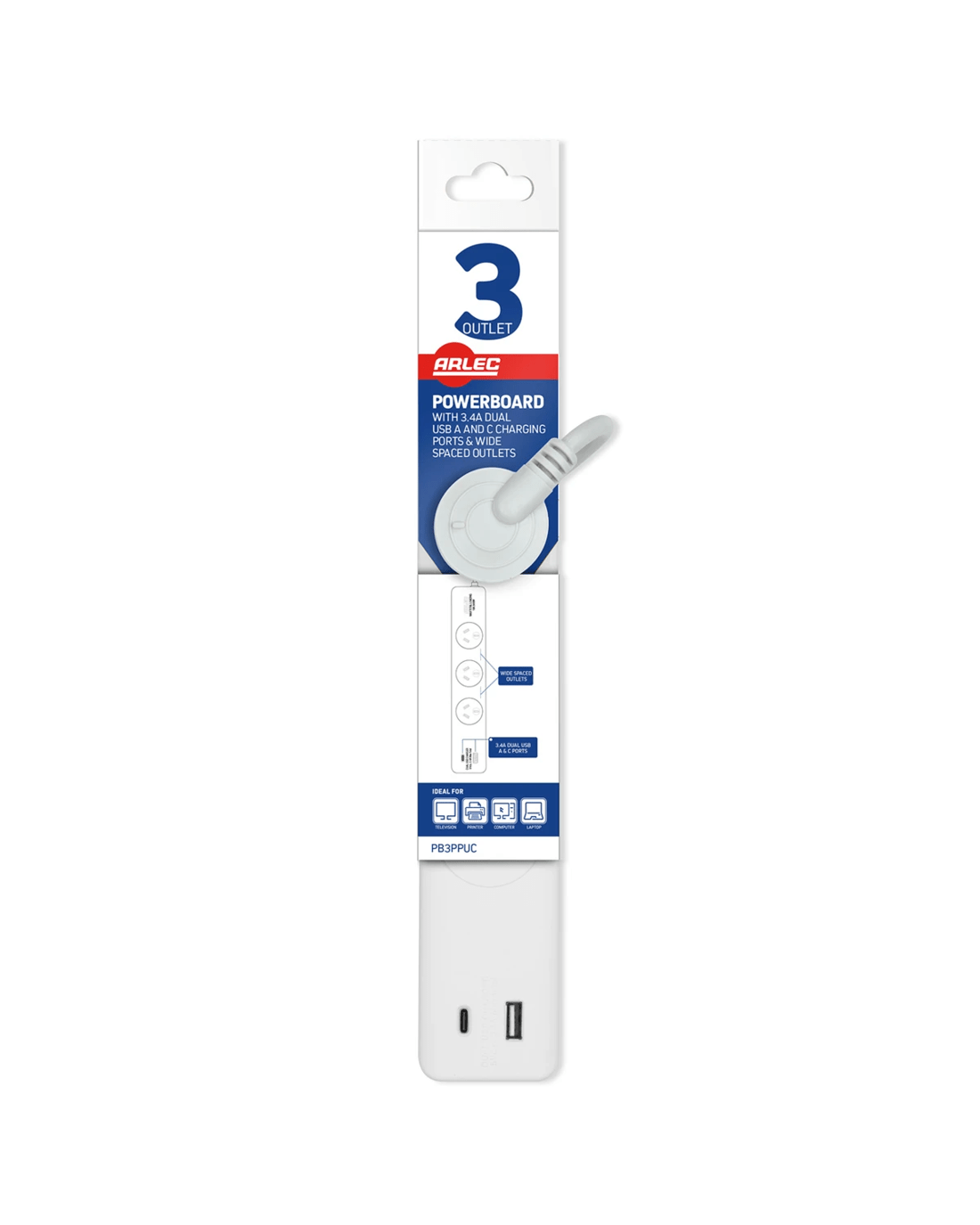 Arlec 3 Outlets 2 USB A&C Powerboard