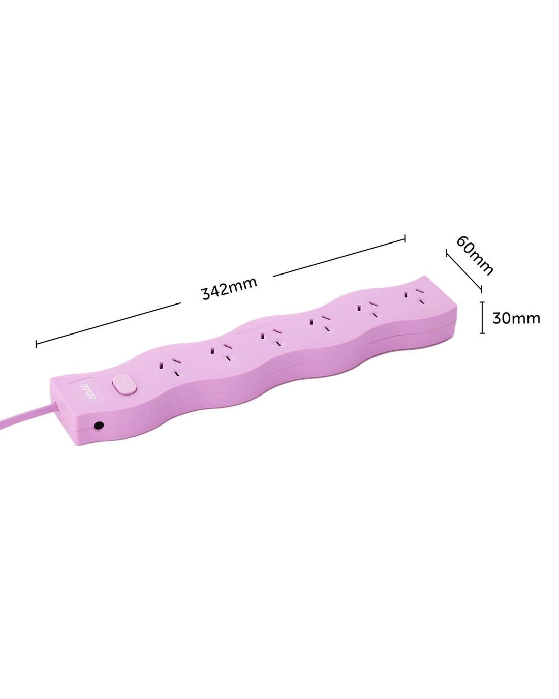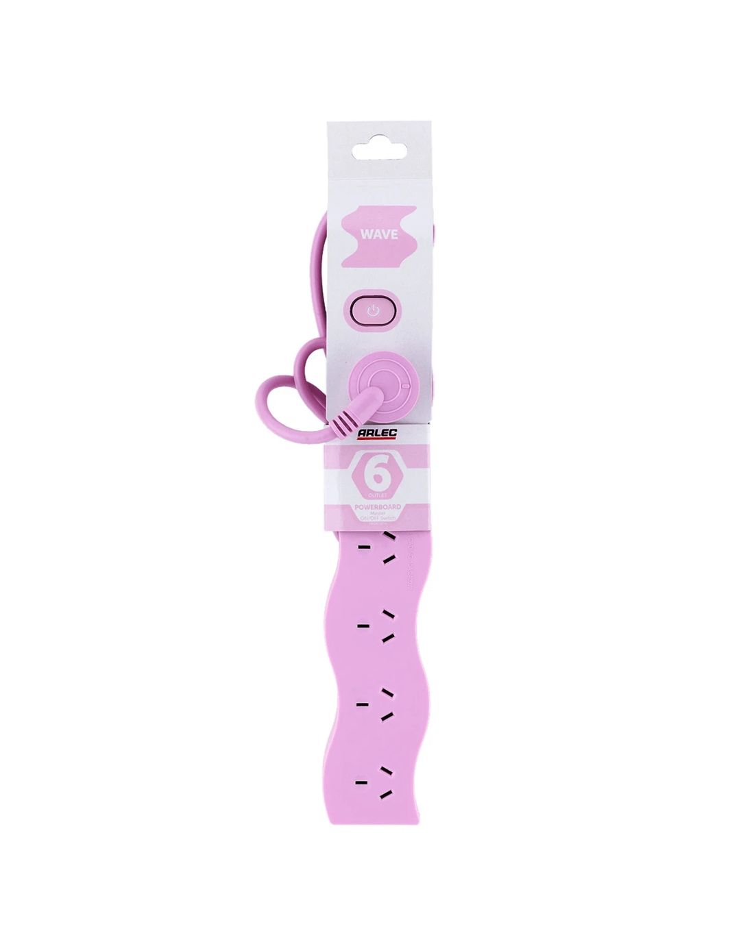 Arlec 6 Outlet Wave Master On/Off Switch Powerboard - Pink