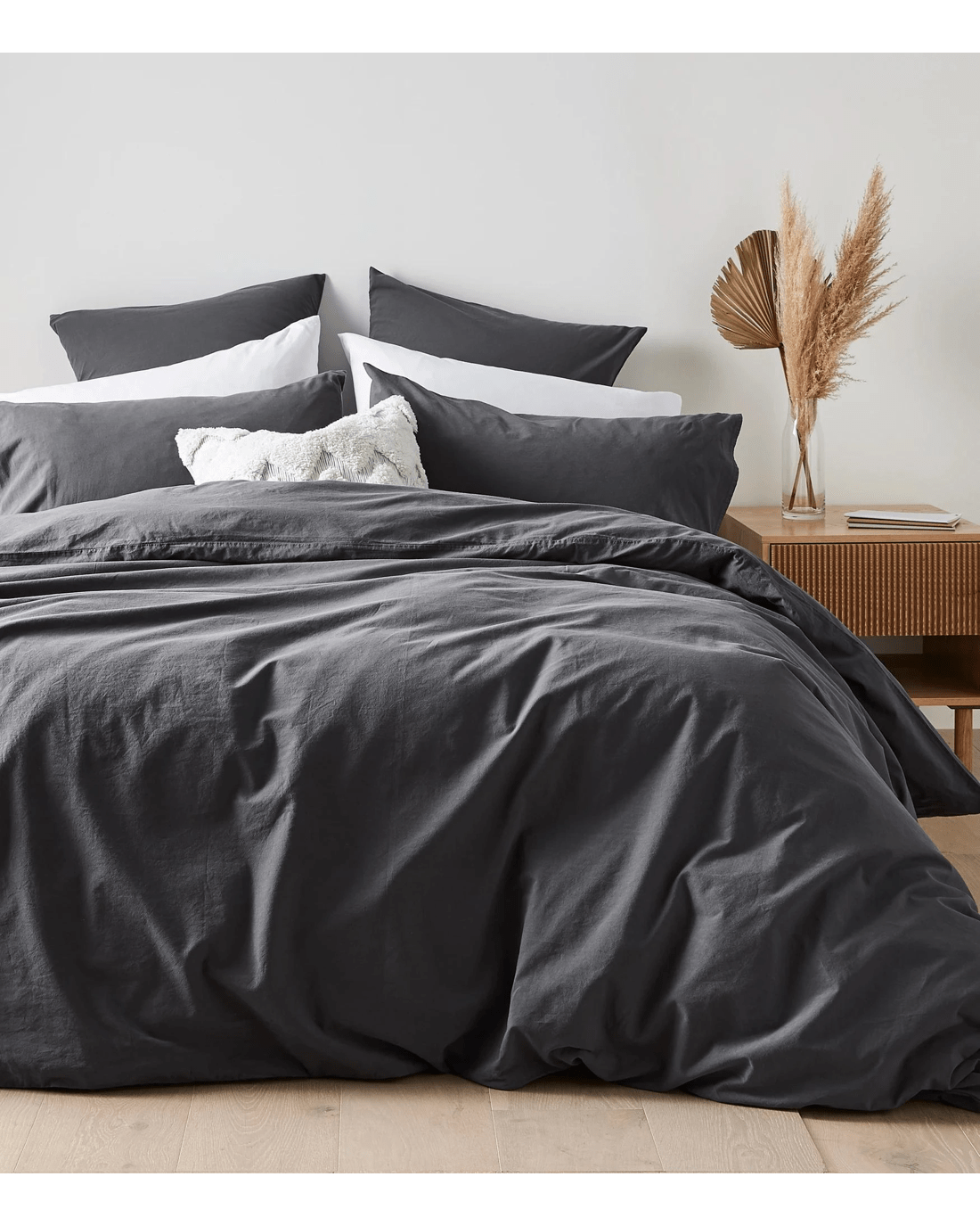 Bring a fresh new look to your bedroom with the Arlo Stonewash Quilt Cover Set. Made from gentle cotton, this cover set adds a cosy and inviting atmosphere to your space. The unique stonewashed finish gives it a soft texture you'll love to touch, and it only becomes more comfortable every time you pop it in the wash. Suitable for any time of year, it keeps you comfortable whether the nights are chilly or warm. Let yourself unwind and enjoy a restful sleep—add the Arlo Stonewash Quilt Cover Set to your home and experience comfort from the very first night.