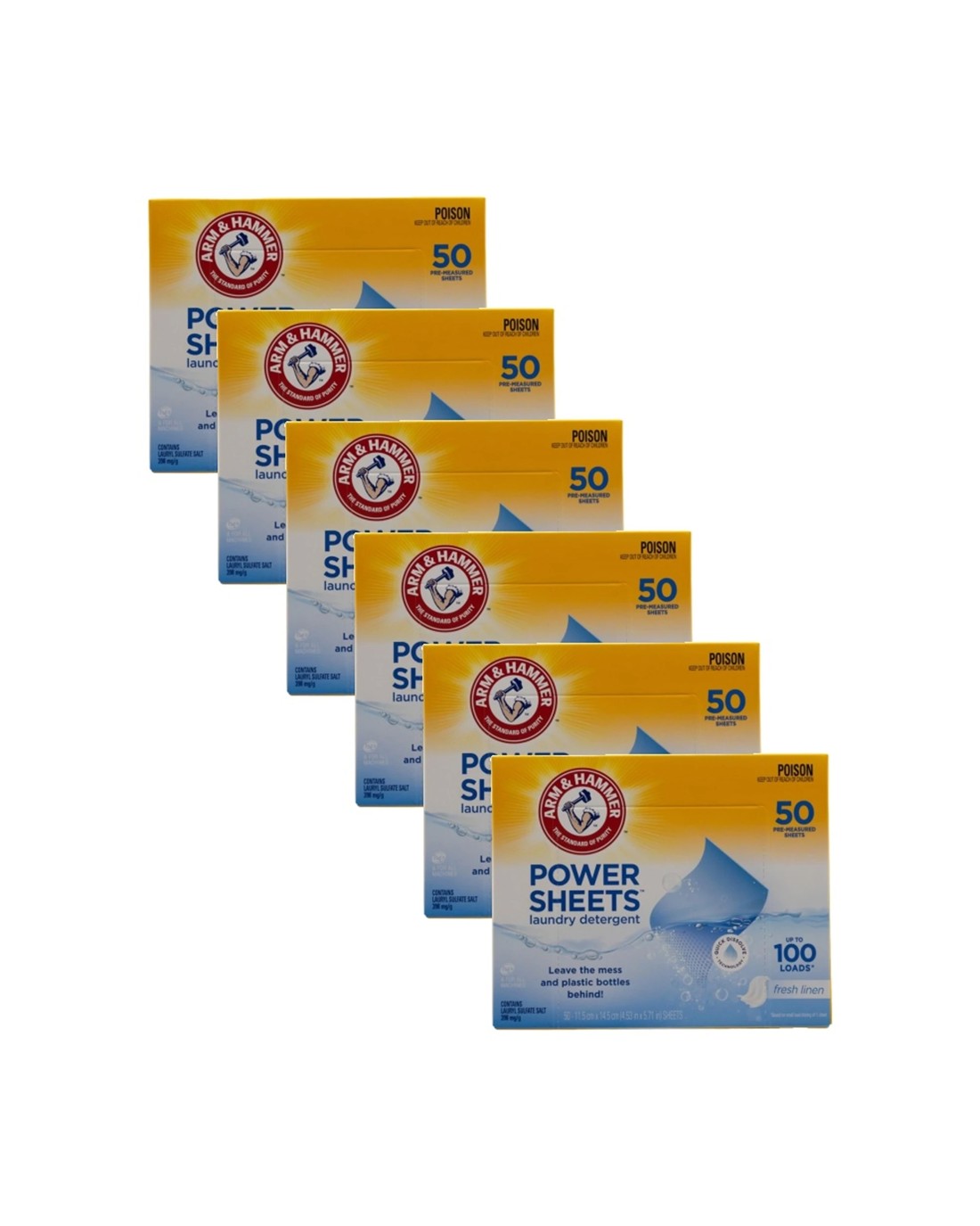 Arm & Hammer Laundry Detergent Power Sheets 6x50pc Up To 100 Loads Fresh Linen - Multi