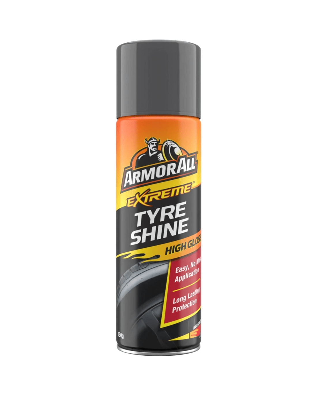 Use Armor All Extreme Tyre Shine for a breathtaking rich black, wet look shine. Our blend of gloss enhancers helps deliver an extreme shine plus with our no wipe formula and easy spray application, you can achieve a smooth finish without the mess.Product Details