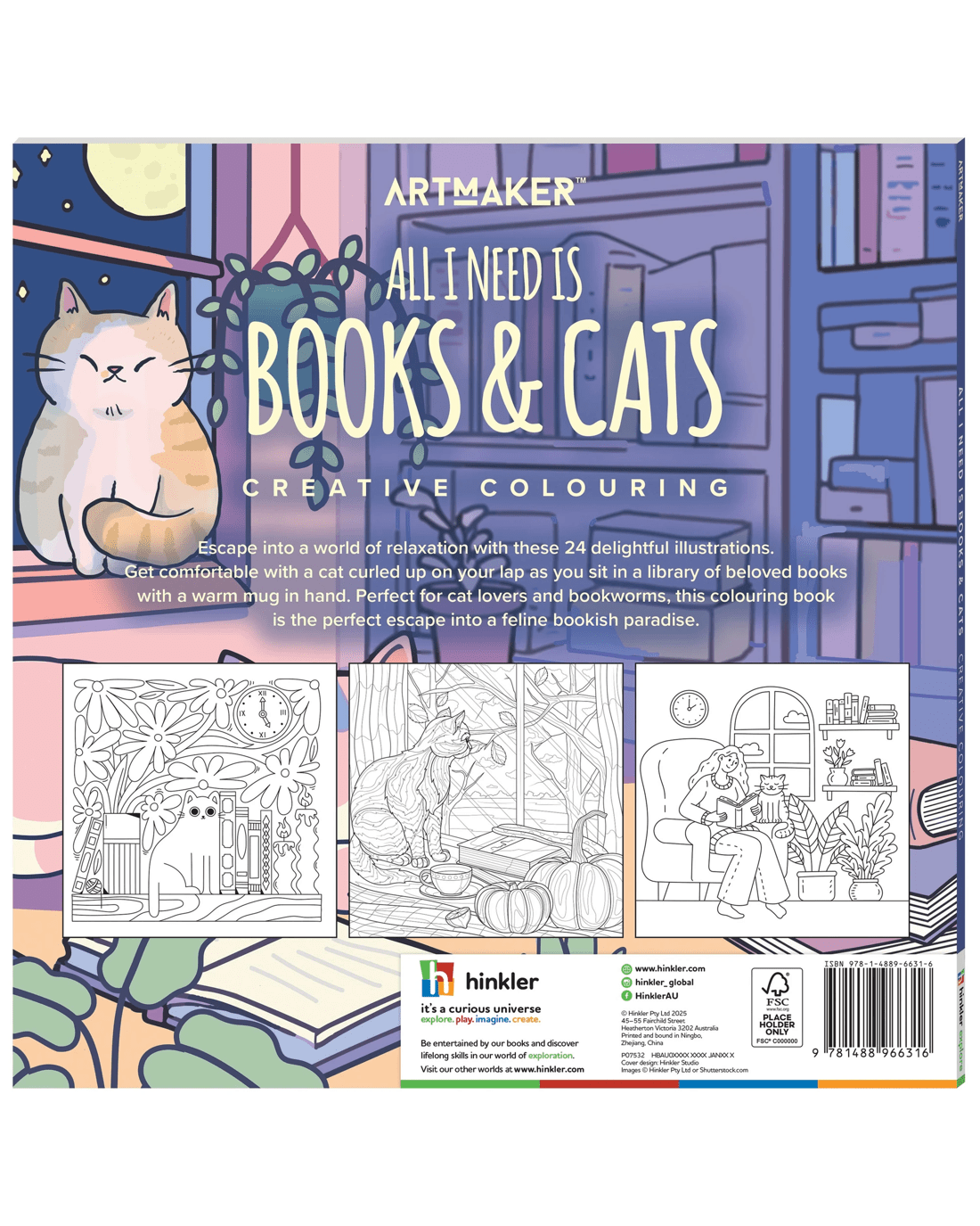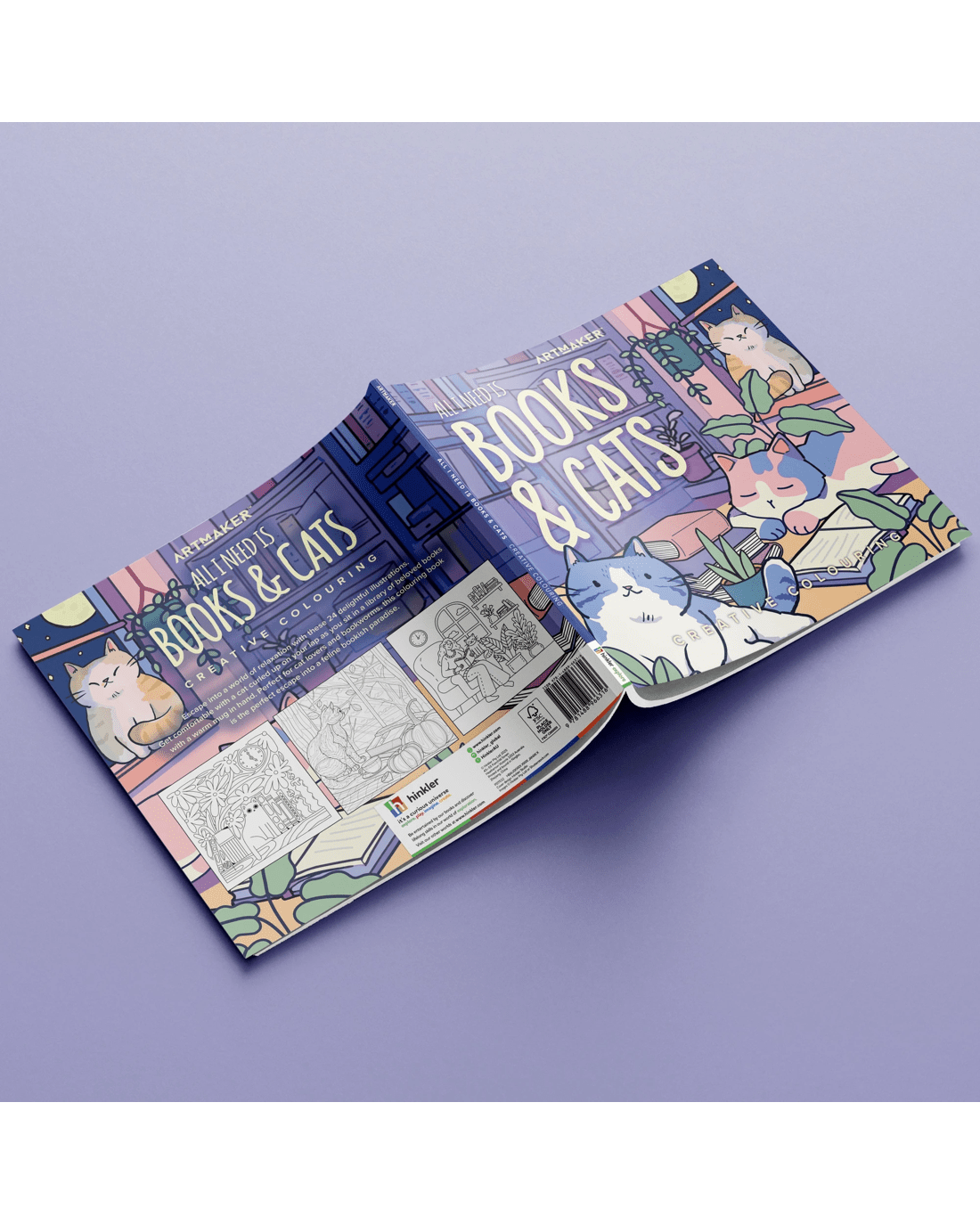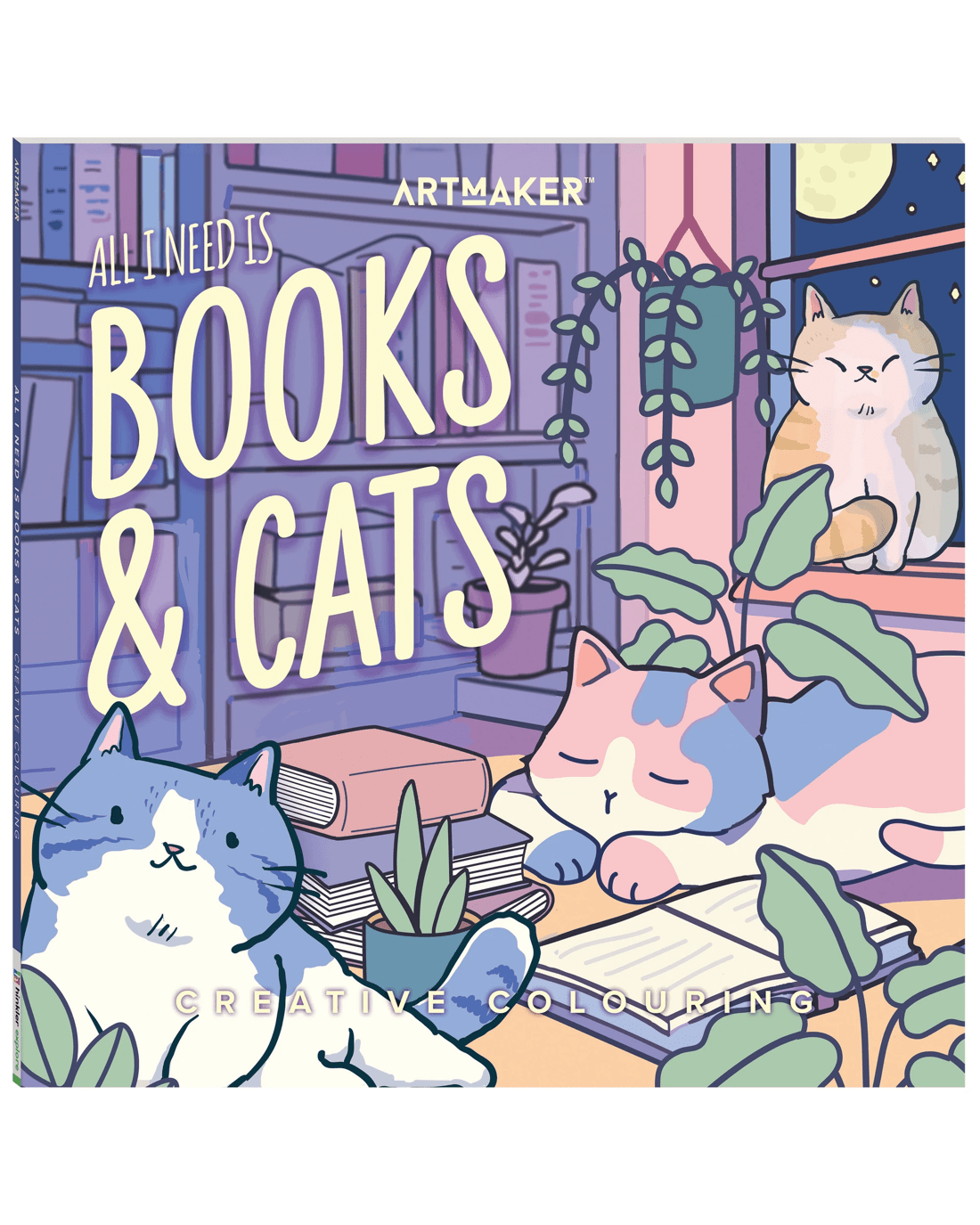 Art Maker All I Need Is Books & Cats Creative Colouring Book