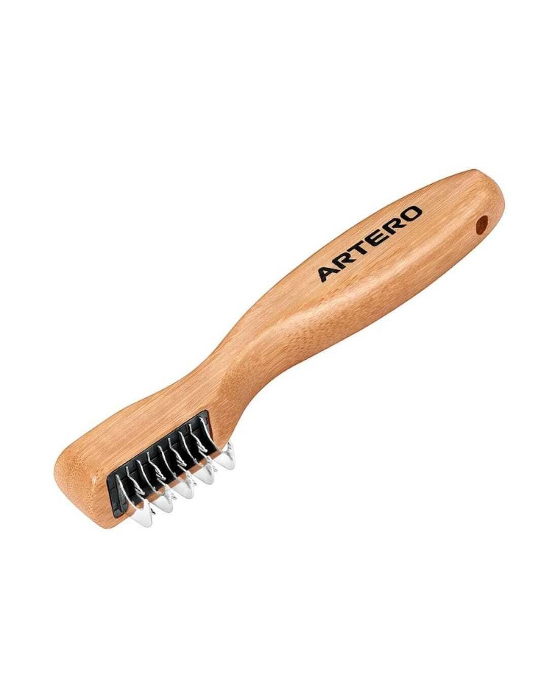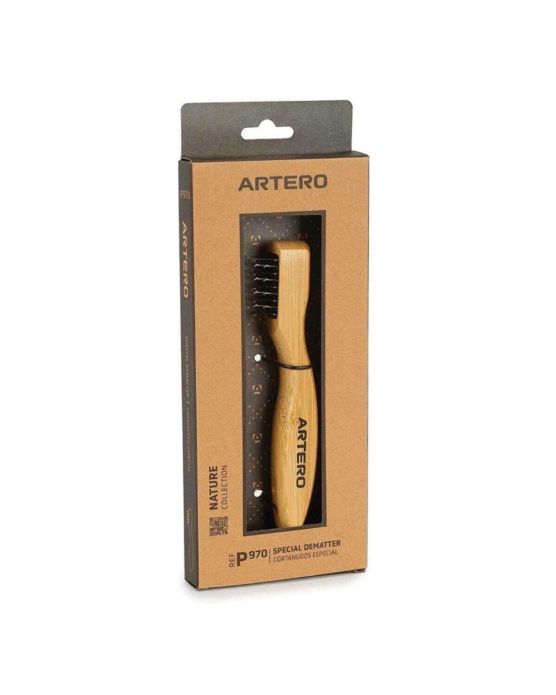 Artero Nature Collection Special Dematter is specially designed for efficiently breaking apart mats. Ideal for cutting through knots and tangles. Features 5 teeth plus 4 spiked leaves for versatile grooming. Suitable for use on dogs with different coat types. Ergonomic design provides a comfortable grip. Teeth are curved to prevent harm of pets. Perfect for de-matting any coat type.