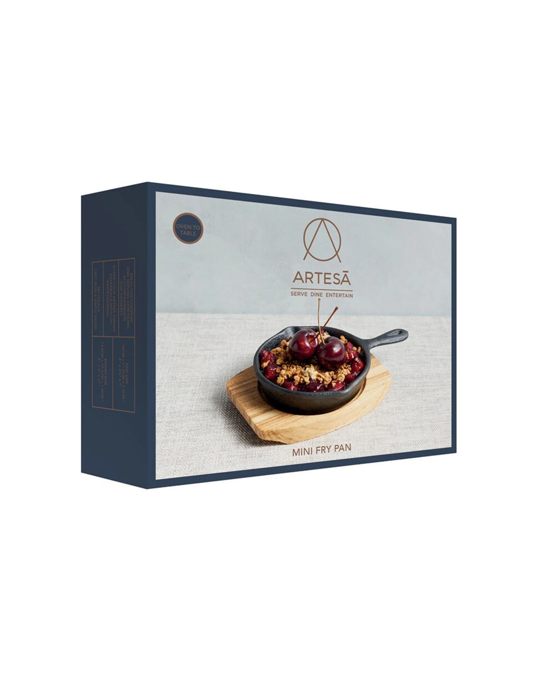 Artesa 4PK Cast Iron Round Small Fry Pan Serving Skillet with Wooden Board 11xm - Black
