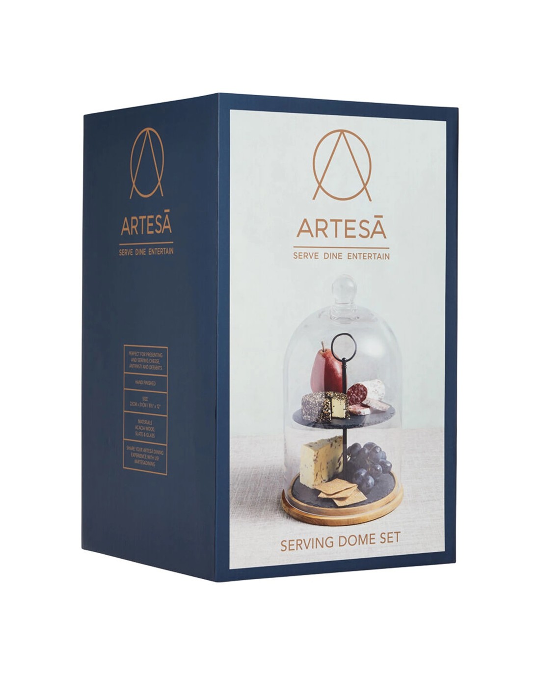 Artesa Appetiser Two Tier Serving Dome With Wood Base Slate Trays Glass Dome - Multi