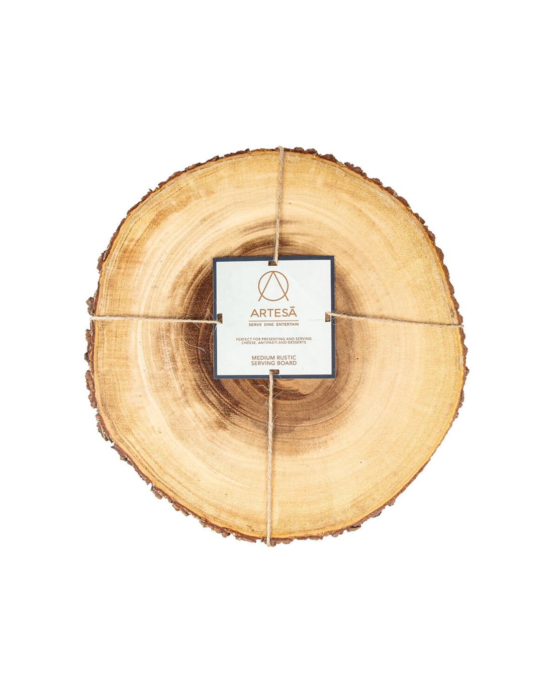 The Artesa Rustic Medium Round Wooden Serving Board is designed for presenting a variety of culinary delights with natural elegance. Crafted from acacia wood, this serving board combines durability with unique natural grain patterns, making each piece one-of-a-kind.