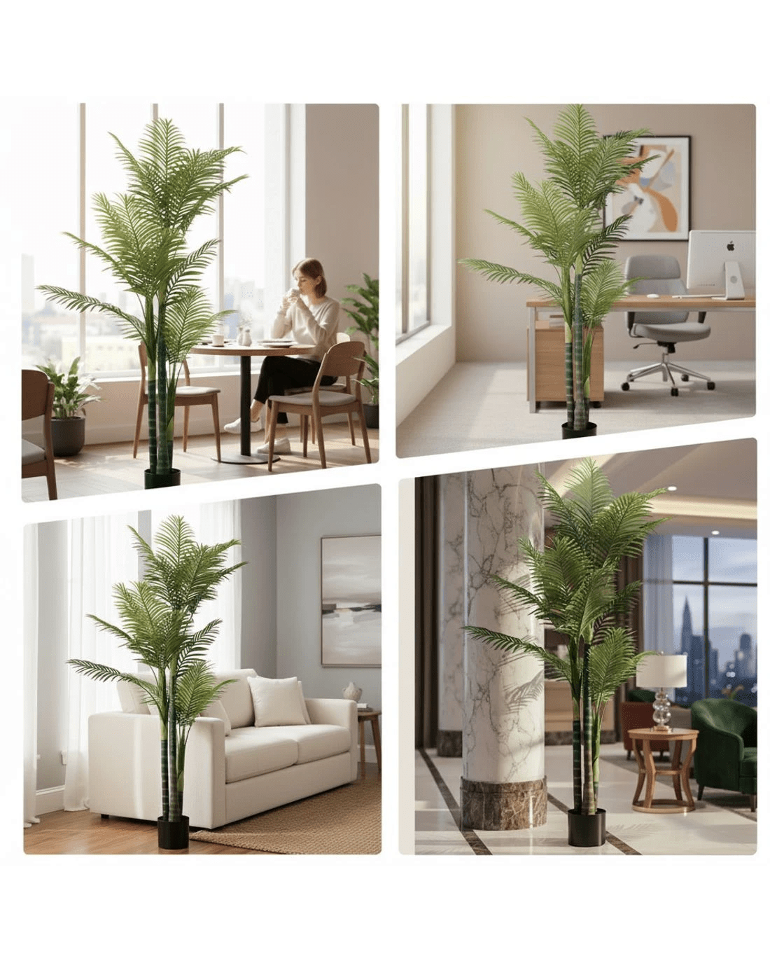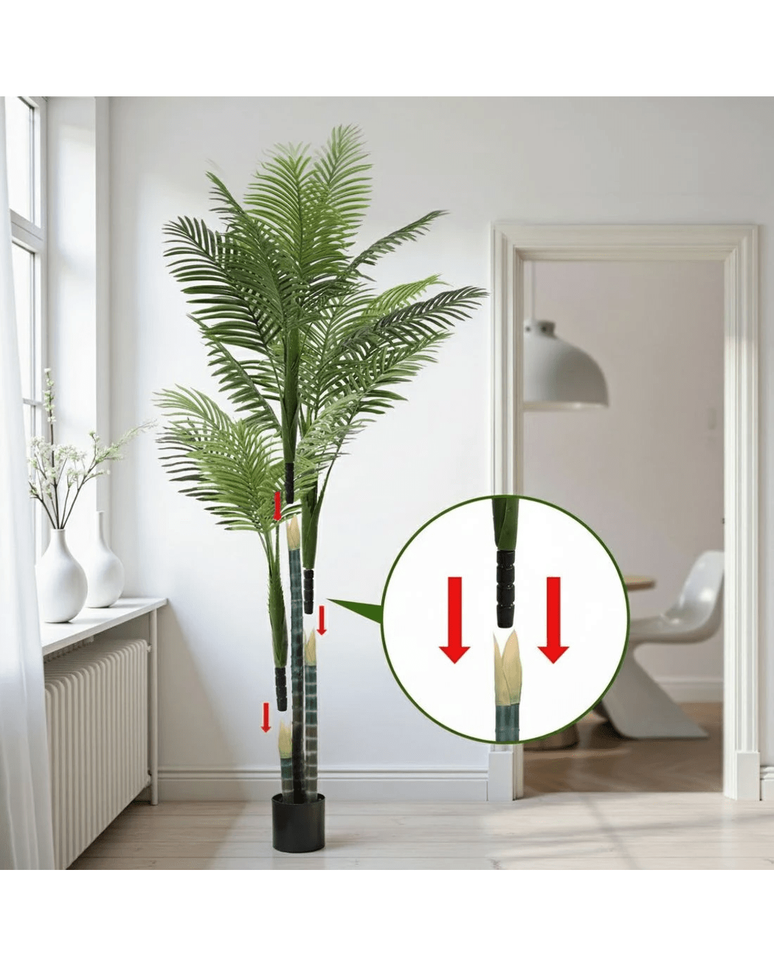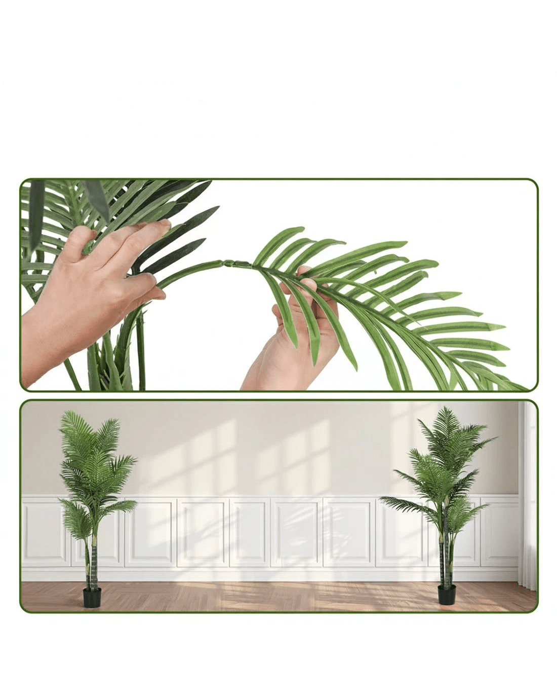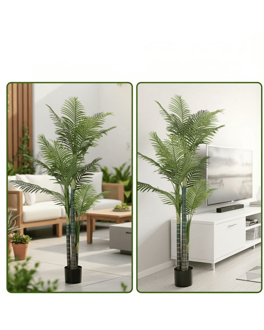 Instantly transform your space into a calming, tropical sanctuary with this lifelike artificial palm tree. Expertly crafted with stunning attention to detail, its lush foliage and realistic trunk mimic the natural beauty of an exotic palm. Enjoy the vibrant look of an indoor/outdoor feature with zero maintenance. The leaves feature a UV-resistant coating, ensuring the rich colour remains fade-free under the harsh Australian sun. Forget watering or trimming—this piece is built for effortless living. Designed for stability, the tree uses durable, non-toxic materials and comes pre-potted in a stable, weighted pot base. Simply wipe the foliage clean to maintain its pristine, year-round elegance.
