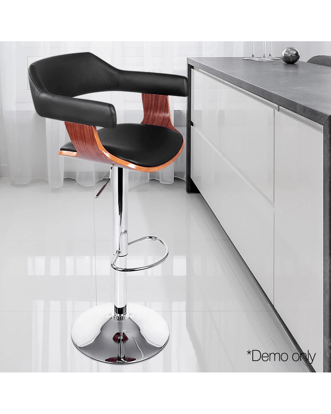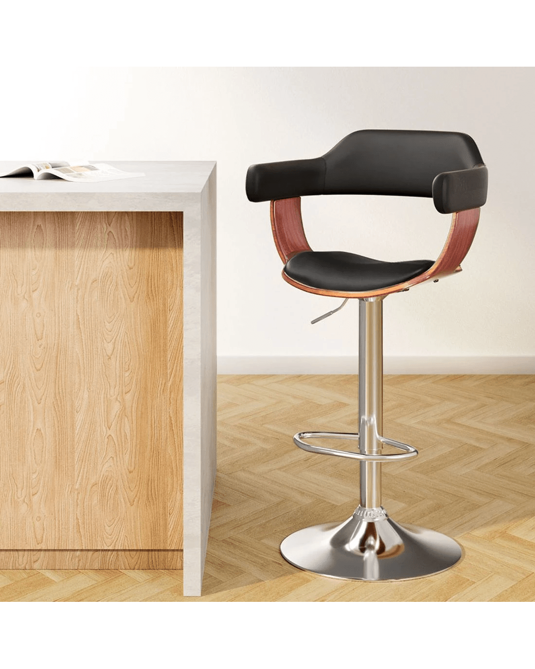 Designed to blend in with any environment, this bar stool serves the purpose of providing seating comfort along with a neat, simple design. Featuring an elegant wooden seat structure and beautiful chrome gas lift lever, it will surely complement your modern décor. It also incorporates a quality chrome base with a PU leather padded seat providing long lasting furniture that offers maximum comfort. Contemporary and innovative, it's a beauty with assured quality.