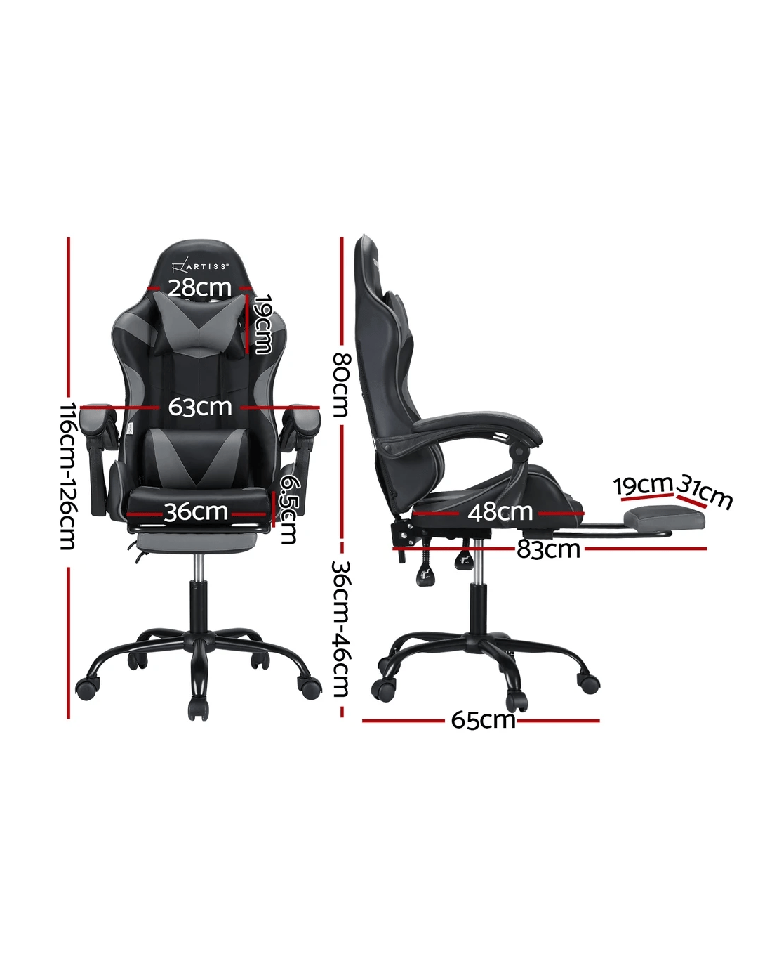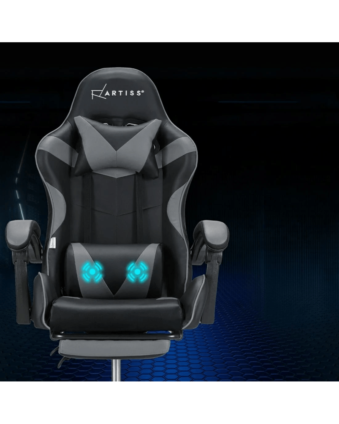 Want to get a massage in the middle of work or gaming? You can really have it all with the Artiss Massage Gaming Chair. It features an ergonomic design with full body support, premium PVC leather upholstery, high-density sponge padding and a sturdy metal frame. The racing chair design is perfect for gamers or anyone who wants some extra flair in their home office. It features premium gas lift components for easy height adjustments, and it can tilt back between 90 and 145 degrees for that perfectly comfortable posture. The chair features 2 massage points aimed at the upper and lower back, perfect for when you really need to sit back and relax. The headrest is removable and adjustable so you can customize your comfort. Not least, the chair is 360-degree rotatable and comes with five dual-wheel castors for easy mobility. Not matter whether you're working, gaming, or taking a long-desired break, the Artiss Massage Gaming Chair is here to provide premium comfort and support.
