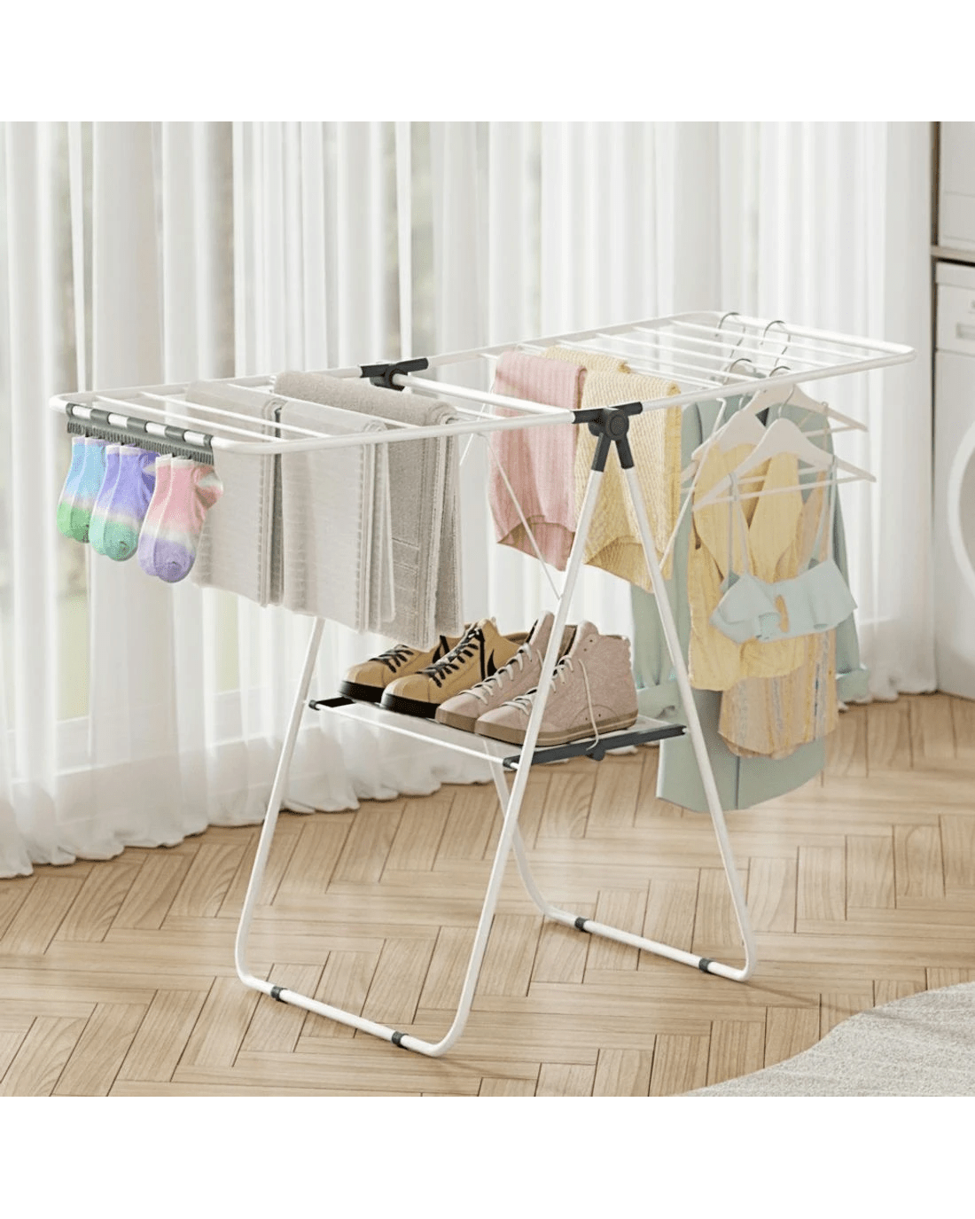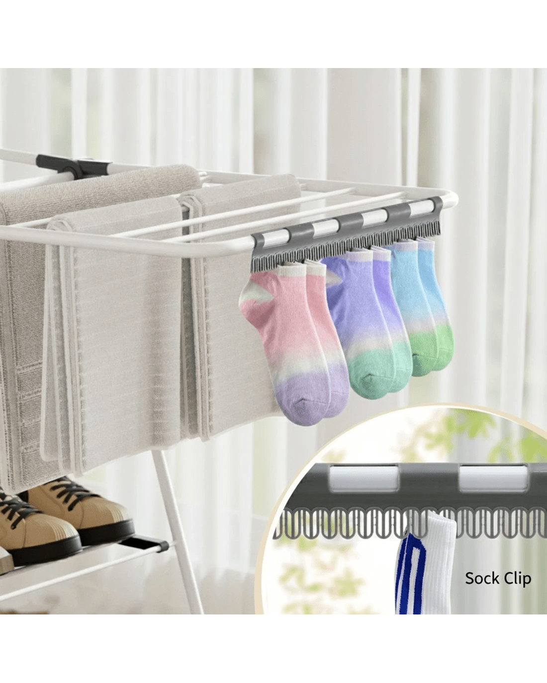 The Artiss Clothes Drying Rack is the perfect solution for all your laundry needs. With 18 sturdy drying rods and 27 non-slip sock clips, it provides abundant space for drying clothes, towels, and more. Its space-saving, foldable design makes storage a breeze, while the lightweight construction ensures easy portability. Suitable for both indoor and outdoor use, this rack is durable, easy to clean, and ready to meet your drying requirements.