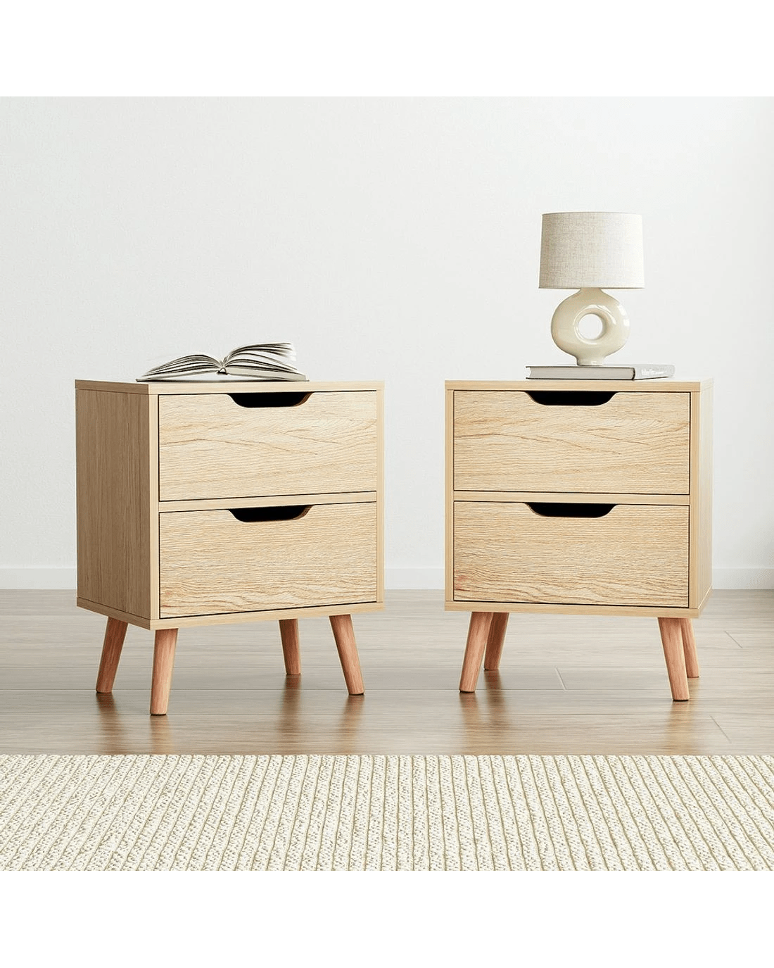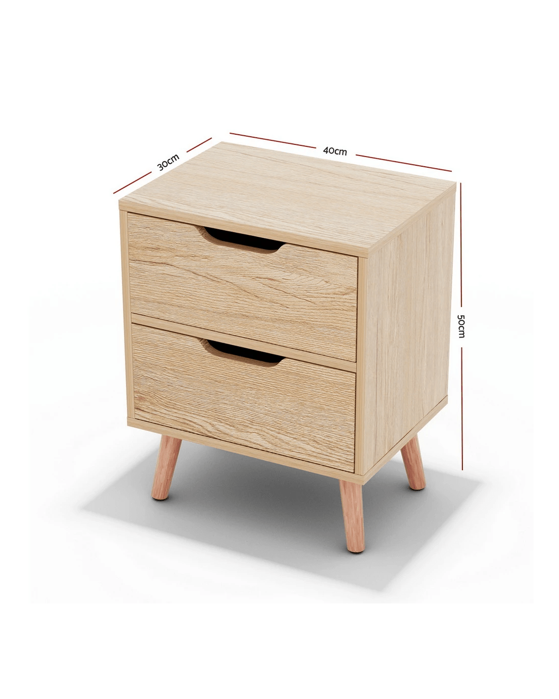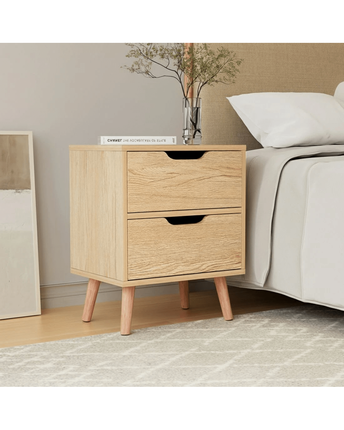 Artiss 2 x Bedside Table 2 Drawers - Natural