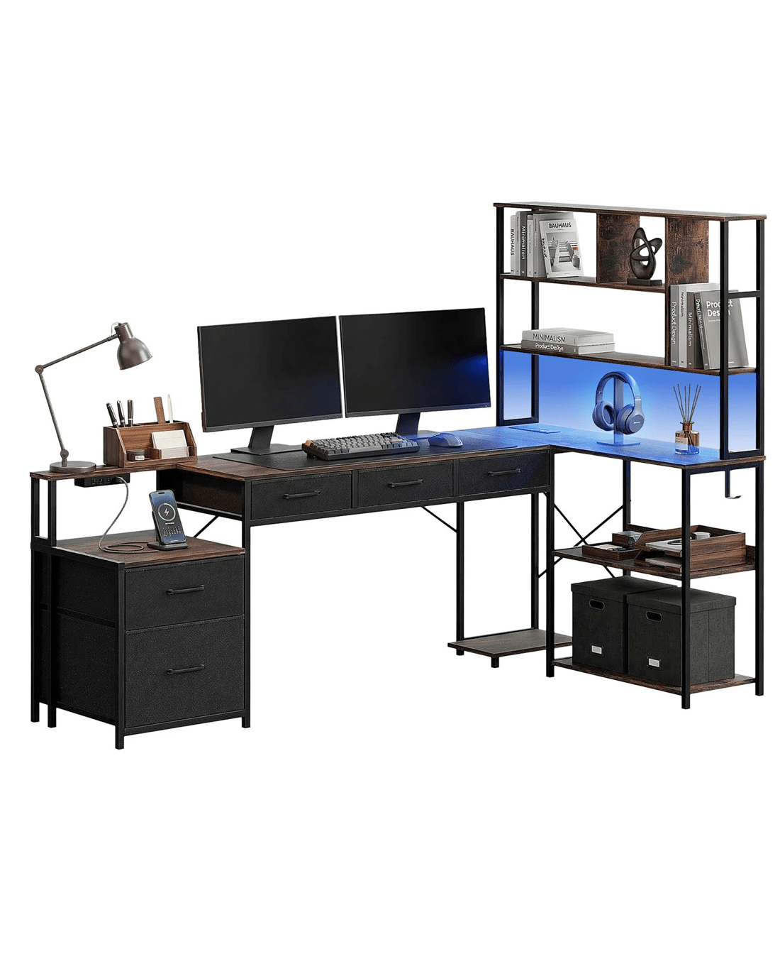 Organized Storage: Three lightweight fabric drawers offer ample room for documents, cables, and accessories.