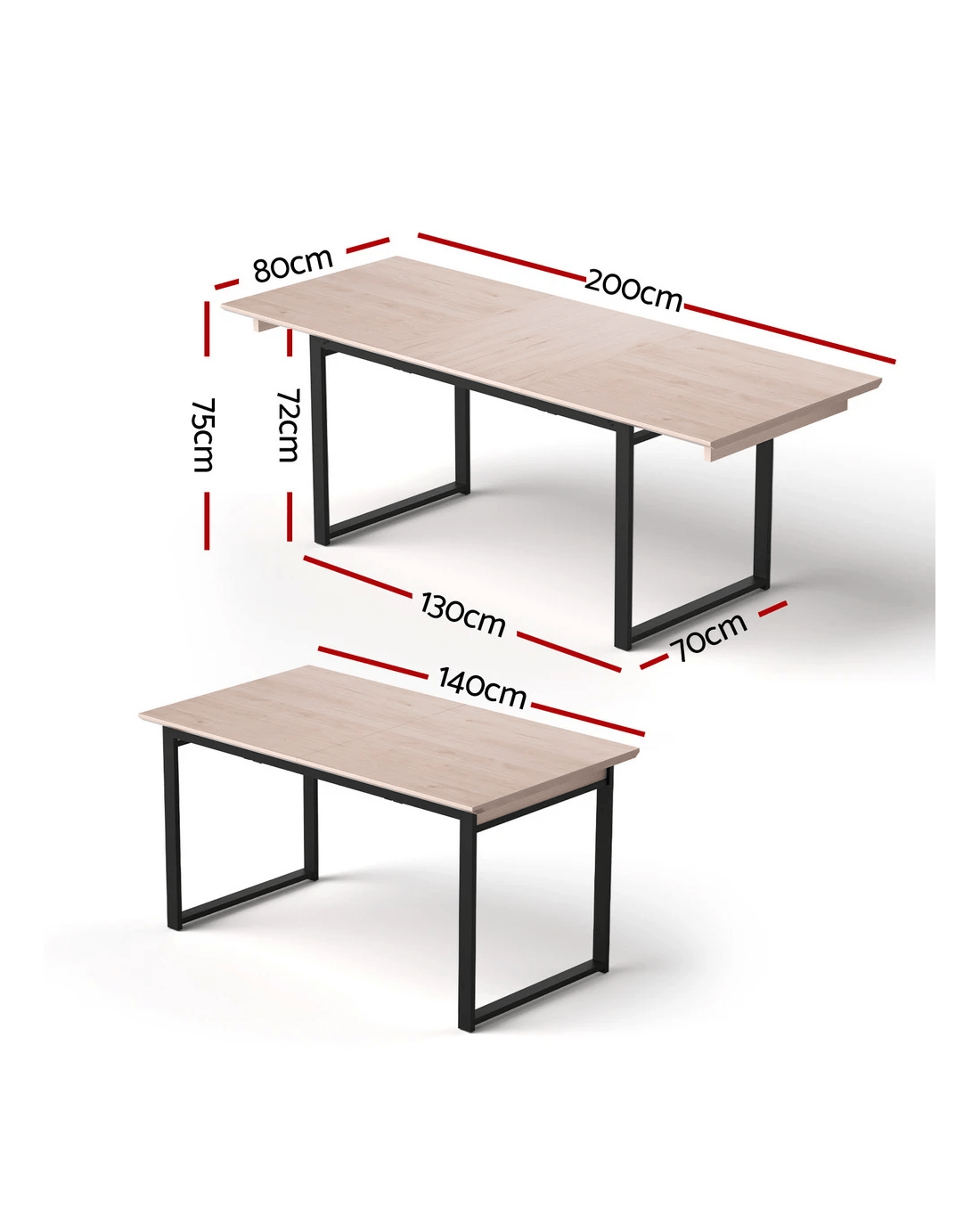 Maximize your dining area with the Artiss Extendable Table, the ultimate versatile solution, easily expanding from a 4-seater to accommodate six for family gatherings. This table is a cracker, featuring a natural light wood look top and matte black metal legs for a modern, Scandi aesthetic. Extension is easy as thanks to smooth rail slides, while the thick tabletop ensures a sturdy and durable build. It requires only simple assembly and is deadset practical, making it a reliable Artiss furniture investment for your home.