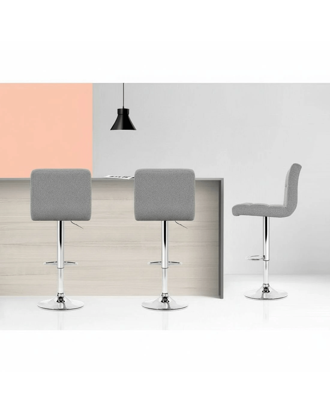 Designed to blend in with any environment, this bar stool serves the purpose of providing seating comfort along with a neat, simple design. Featuring an elegant design and beautiful chrome finish gas lift lever, it will surely complement your modern decor. It also incorporates a quality chrome finish base with a fabric padded seat providing long lasting furniture that offers maximum comfort. Contemporary and innovative, it's a beauty with assured quality.