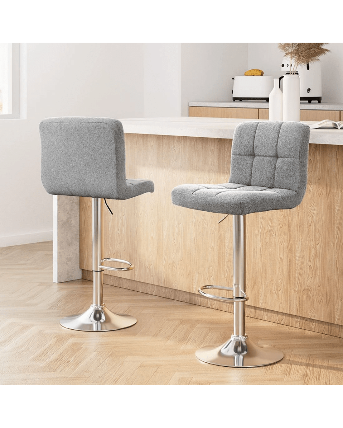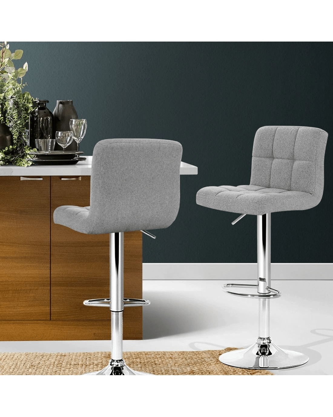 Sold by Aisle SixArtiss 2x Bar Stools Fabric Gas Lift - Grey