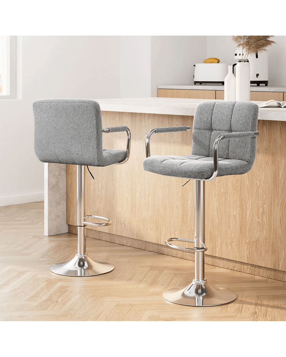 Sold by Aisle SixArtiss 2x Bar Stools Fabric Gas Lift w/Armrest - Grey