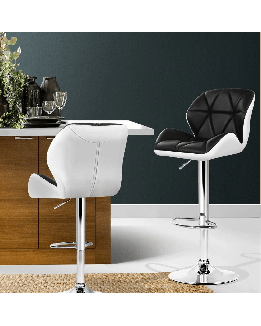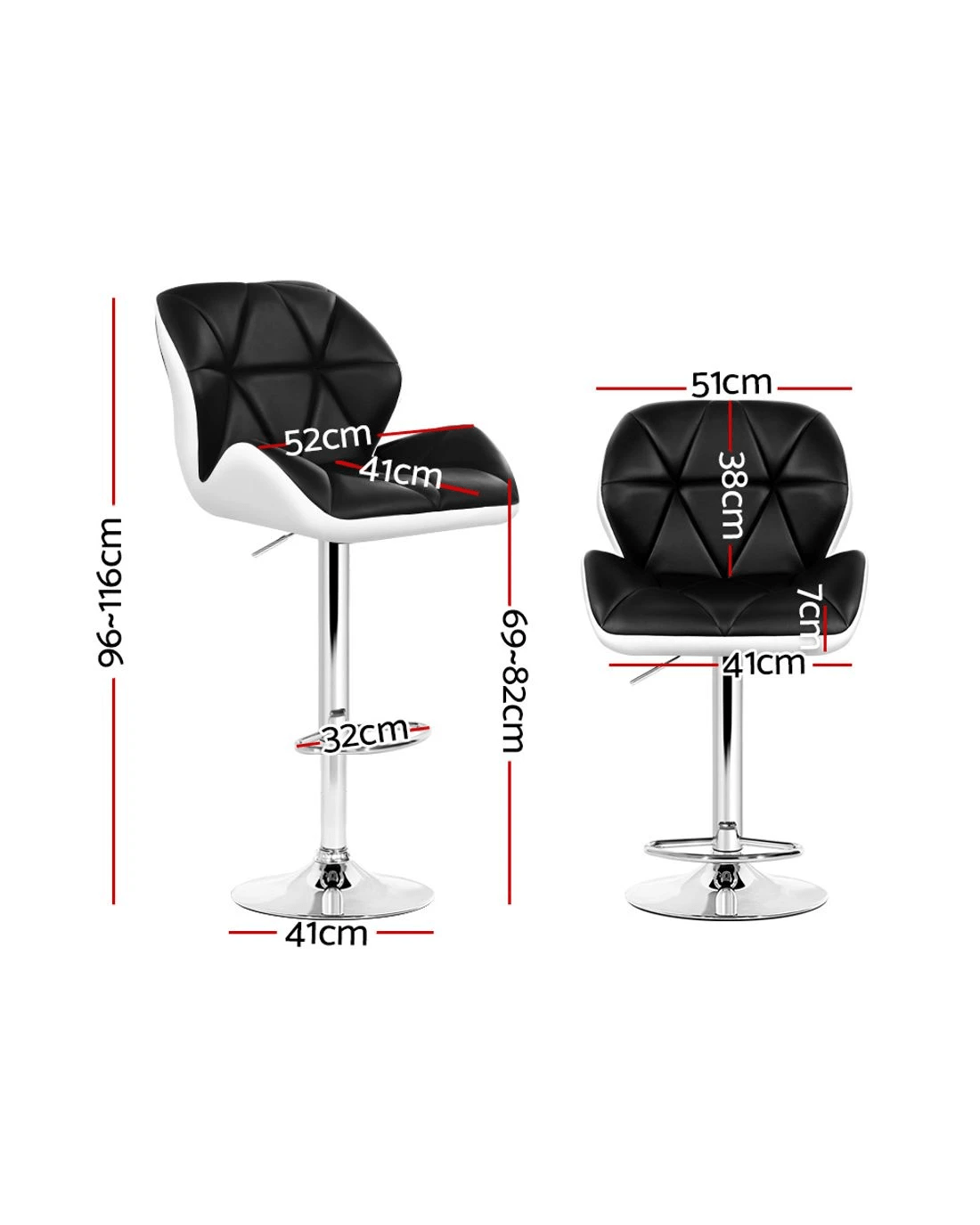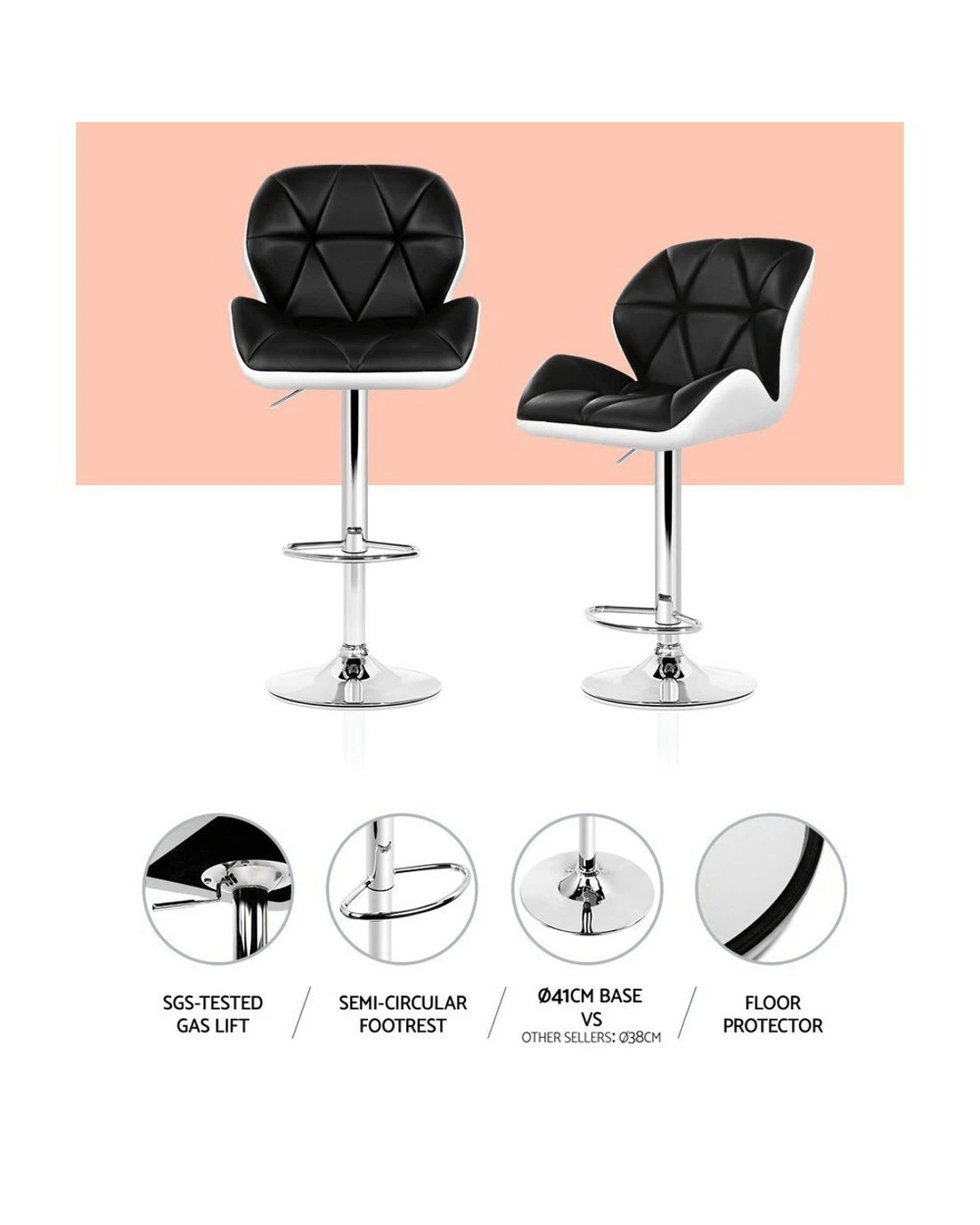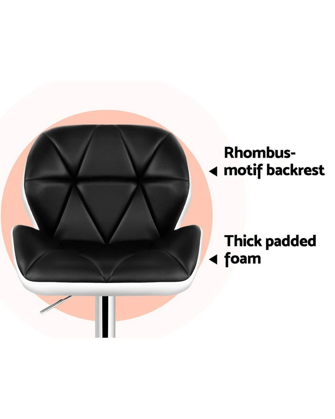 Chill out and relax with our Artiss Jorn Bar Stool. With its classic design and contemporary good looks, the bar stool is must for every discerning home-proud person. Upholstered in faux leather, the bar stool also features an extra thick foam padding for ultimate comfort. The contoured rhombus-motif backrest also adds a touch of class to its inherent charisma. The semi-circular footrest ensures relaxed sitting while the omni-directional seat makes for easy turn to any facing. Better still, the height can be easily adjusted with the SGS-tested gas lift and the large base ensures stability at all times. Not least, a floor protector under the base helps to keep your pristine floor scratch-free at all times.