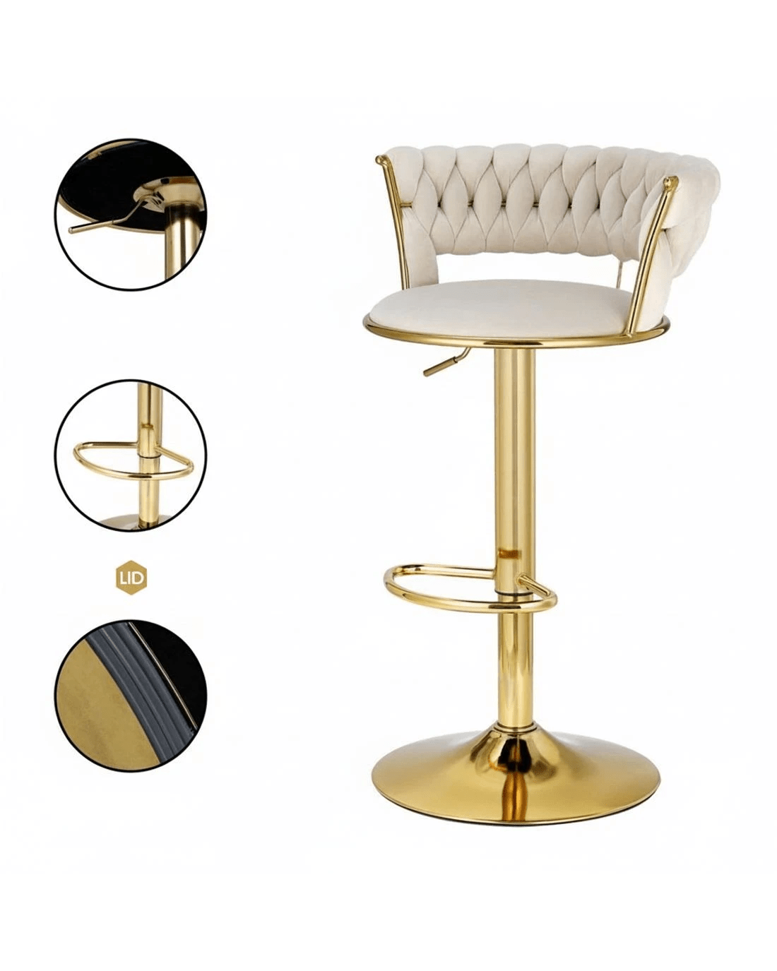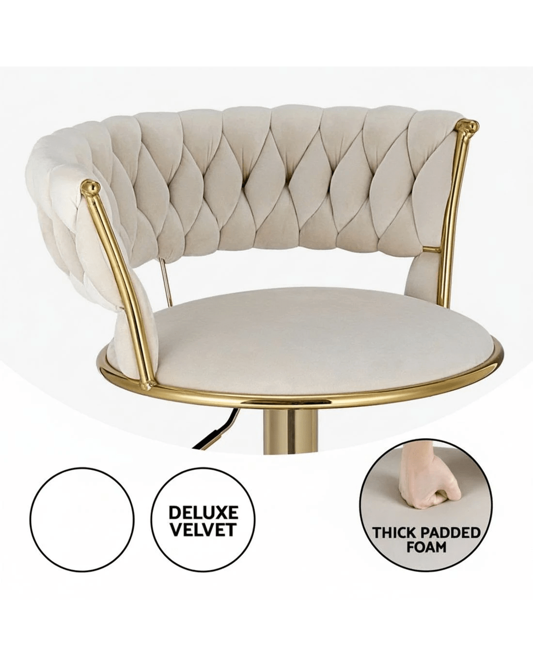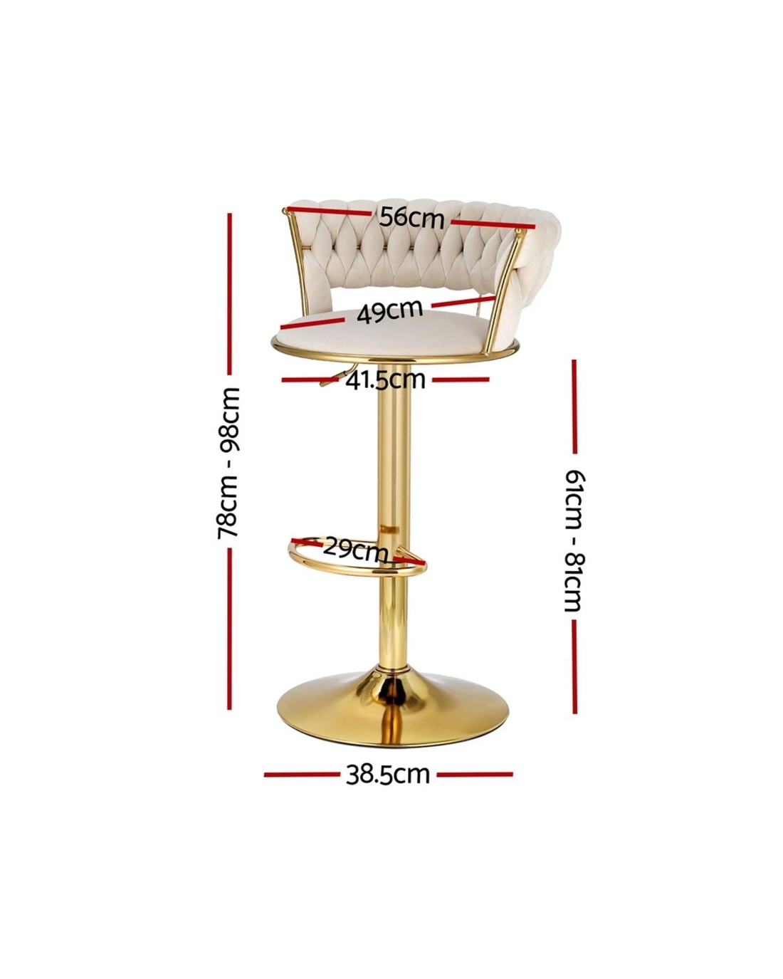Sold by Aisle SixArtiss 2x Bar Stools Gas Lift Velvet Woven Backrest Ivory - Beige