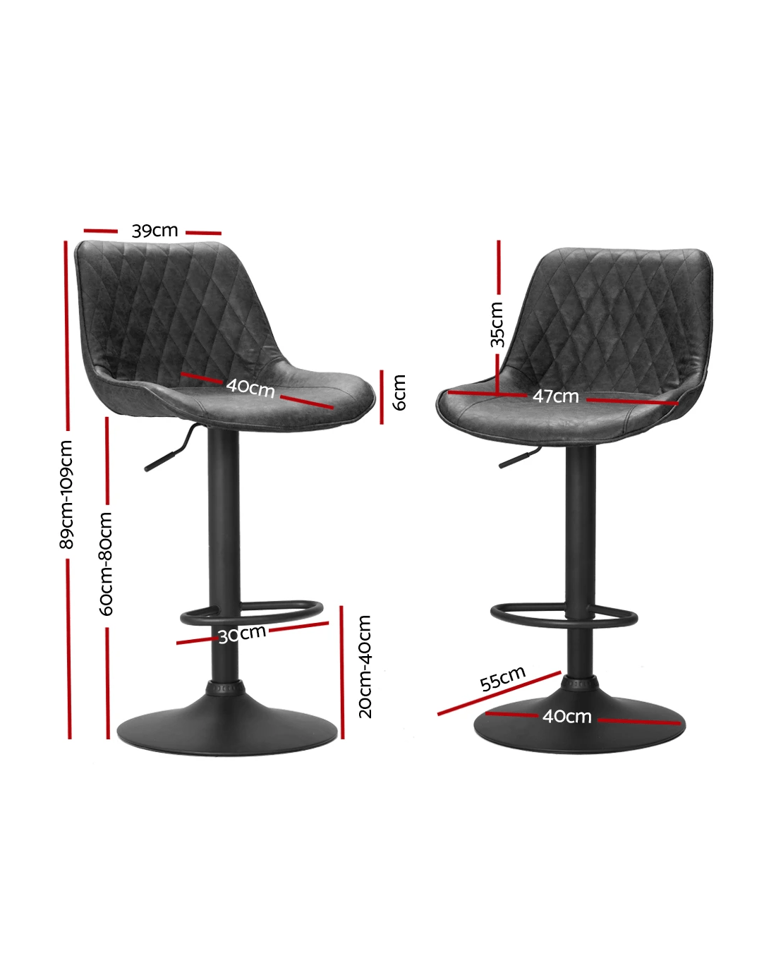 Not an ordinary piece of furniture but stands out in every aspect, whether it's craftsmanship, style, upholstery, comfort, or quality that speaks for itself. If you're after achieving an elegant vintage yet contemporary feel in your space, our Artiss' Rushal bar stools with an elegant back and seat design are just perfect. They're great for catchups over coffee with friends, a jam session with the band, or daily living. Our bar stools are uniquely designed that will make you want them in your space. You can style our Rushal bar stools anywhere, from living rooms to kitchen and the bar section, they will effortlessly fuse in any décor and lend an elegant vintage feel to your space. These bar stools can even be used as an impromptu seat when you need extra sitting space. Featuring an elegant diamond back design with beautiful PU vintage leather upholstery, our bar stools have thick foam soft padded seats, sturdy powder-coated pedestal base, adjustable height with SGS-tested gas lift, and floor protector for ultimate stability and scratch-free floors. Their solid structure ensures longlasting use and superb durability. They also feature 360˚ rotatable seat so you can face any direction for ease of conversing with guests and family. Our Rushal bar stools make a timeless piece of furniture, and with two colour options, you can choose that best complements your space and suits your taste. Artiss' Rushal bar stools would make a gorgeous addition to your space. Shop them today!