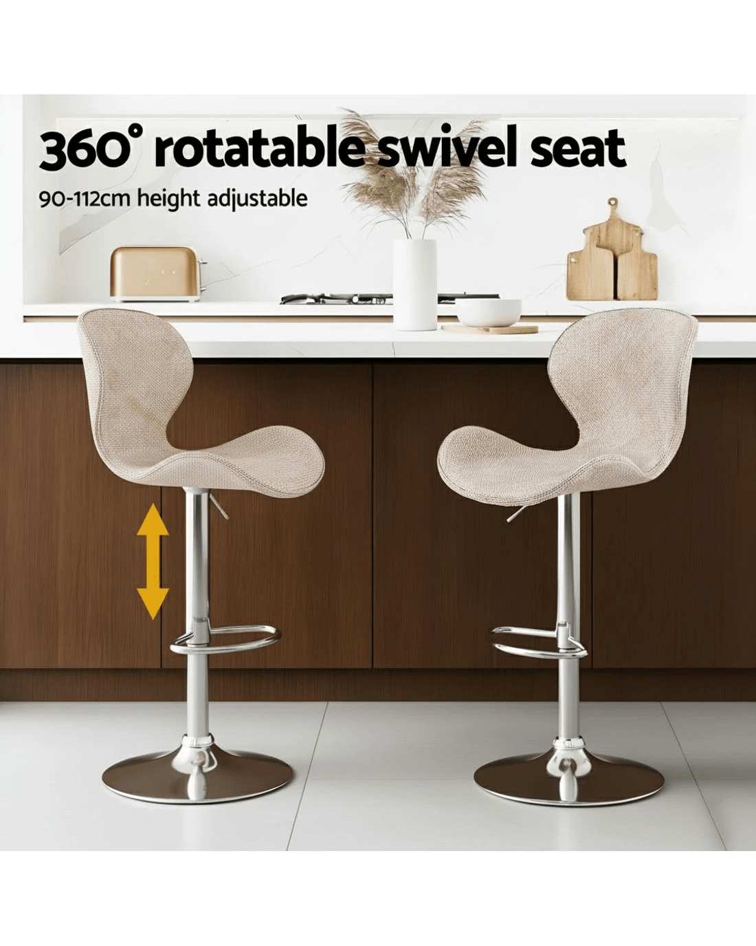 Experience superior comfort with a curved wing design and a premium PE rattan seat. The height is adjustable (90-112cm) using a durable gas lift cylinder, while the sturdy metal construction ensures a 120kg capacity per stool. The semi-circular footrest ring improves stability and relaxation. Anti-slip floor protectors prevent scratches, making these stools perfect for both indoor and outdoor use.