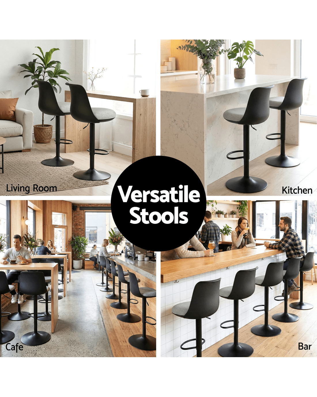 Artiss 2x Bar Stools Kitchen Swivel Gas Lift Counter Dining Chair Curved - Black