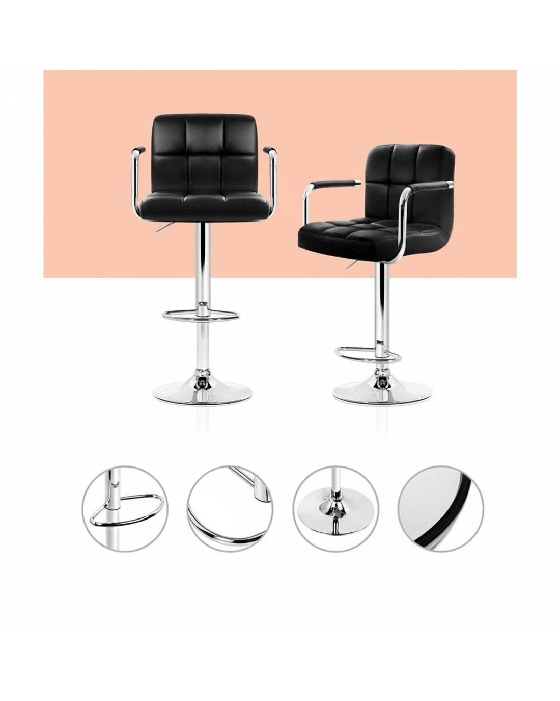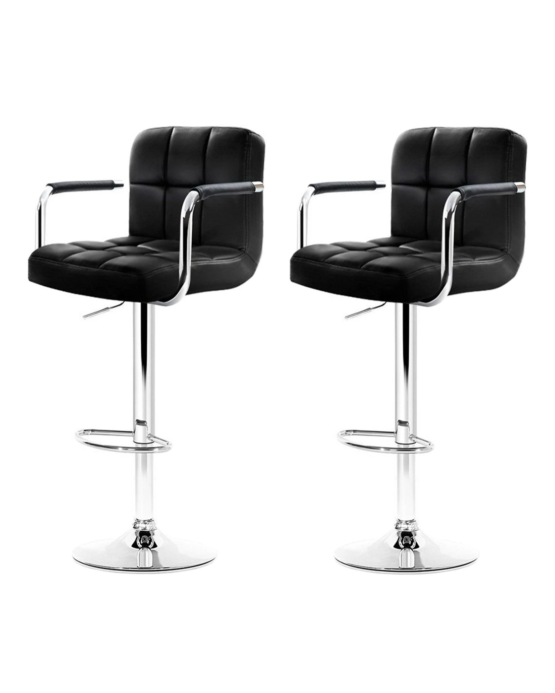 Sold by Aisle SixArtiss 2x Bar Stools Leather Gas Lift w/Armrest - Black
