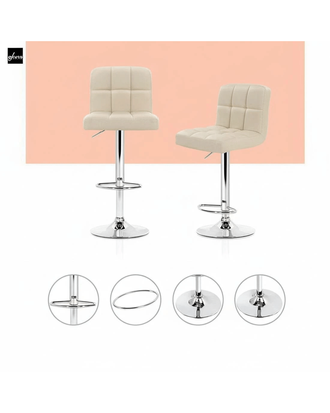 Artiss 2x Bar Stools Leather Gas Lift - Beige