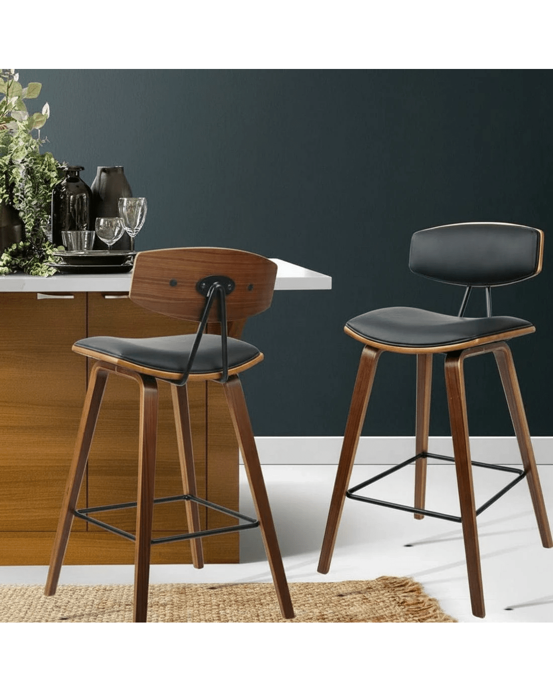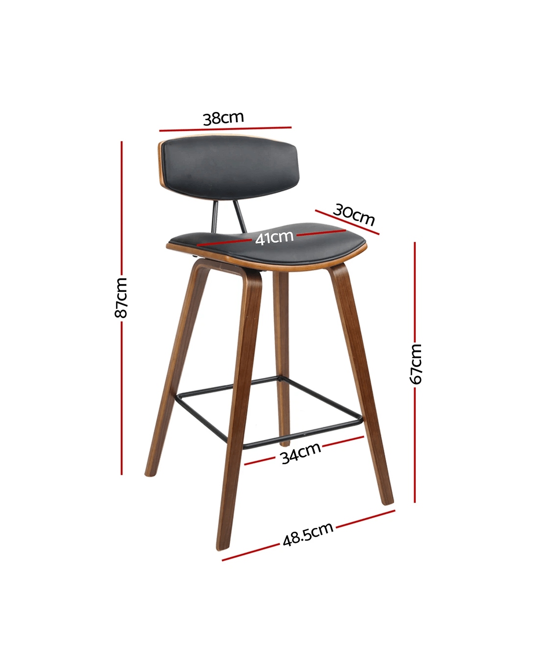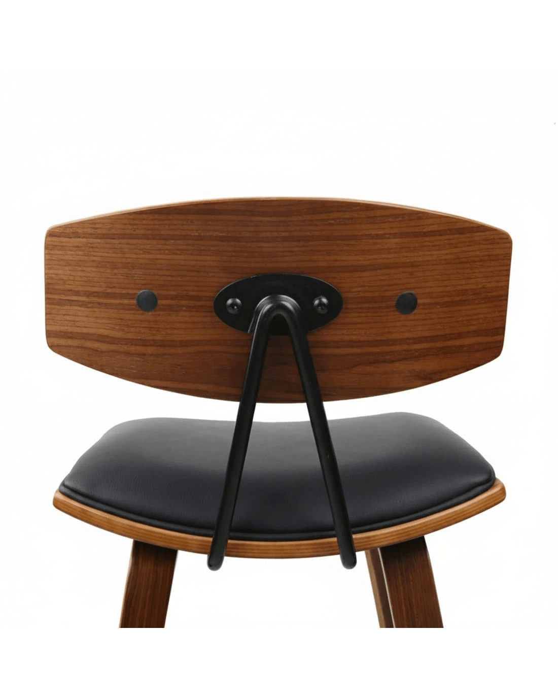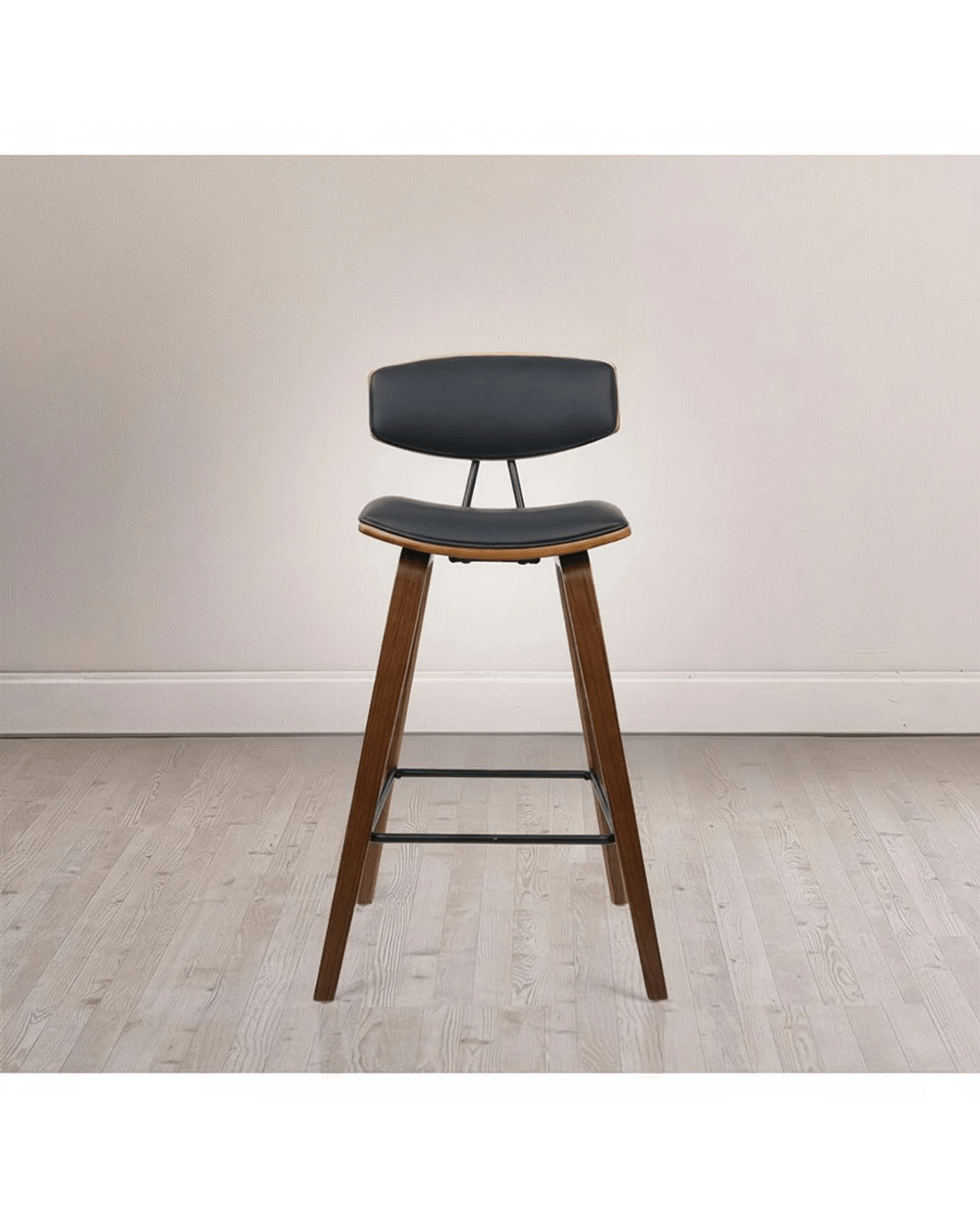 Meticulously crafted with solid wood in a stunning walnut finish for the legs and backrest, the Bentwood Bar Stool features a generous faux leather seat and backrest that feel comfortably plush and look absolutely classy. The wide backrest also provides appreciable enveloped support while the anti-slip rubber pads on the leg bottoms keep the stool steady and firm even with robust use. Not least, the power coated metal footrest rectangle lets you perch in style, feet up.