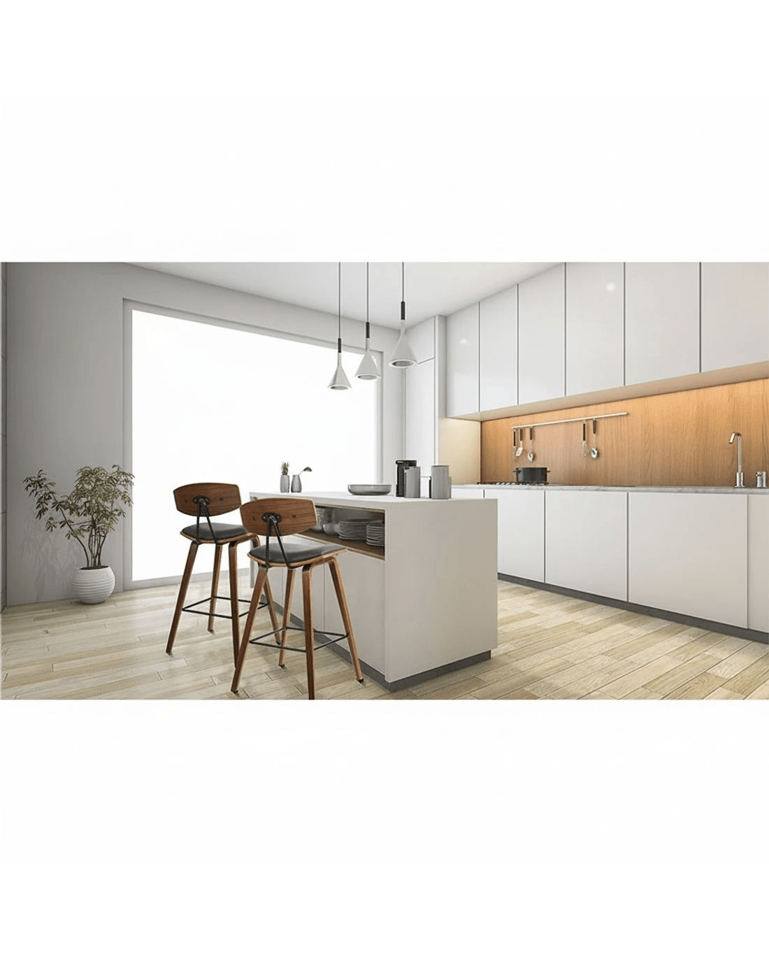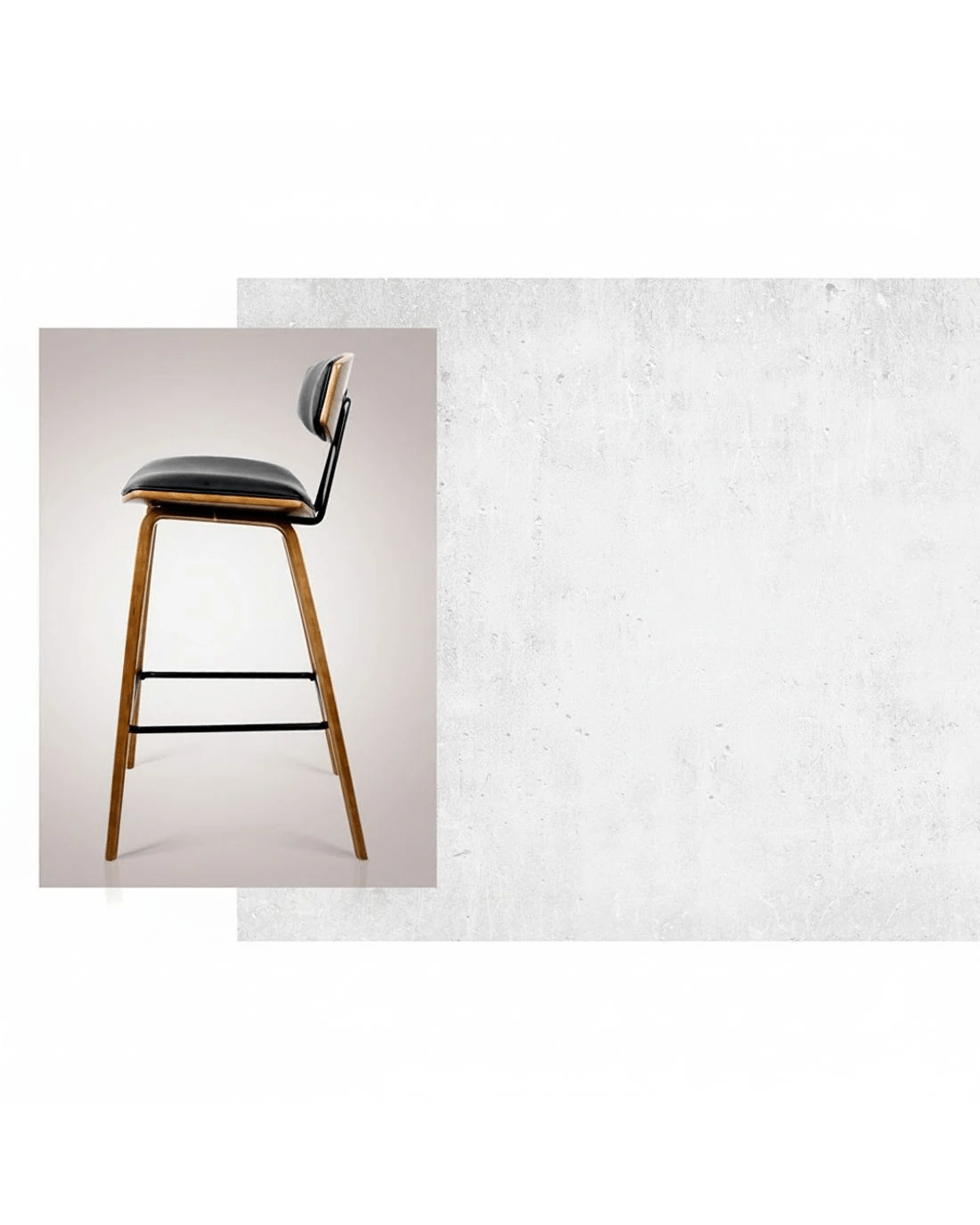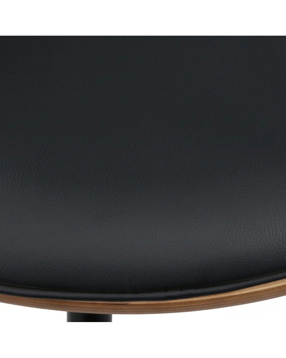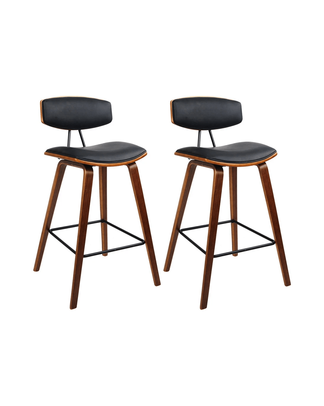 Meticulously crafted with solid wood in a stunning walnut finish for the legs and backrest, the Bentwood Bar Stool features a generous faux leather seat and backrest that feel comfortably plush and look absolutely classy. The wide backrest also provides appreciable enveloped support while the anti-slip rubber pads on the leg bottoms keep the stool steady and firm even with robust use. Not least, the power coated metal footrest rectangle lets you perch in style, feet up.